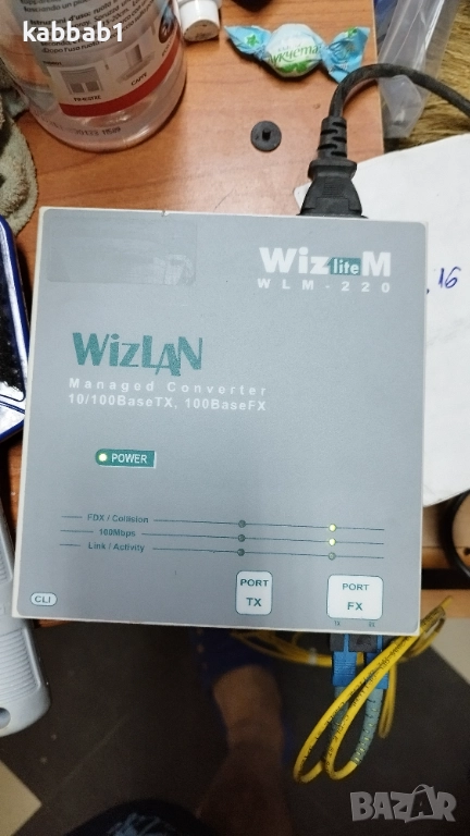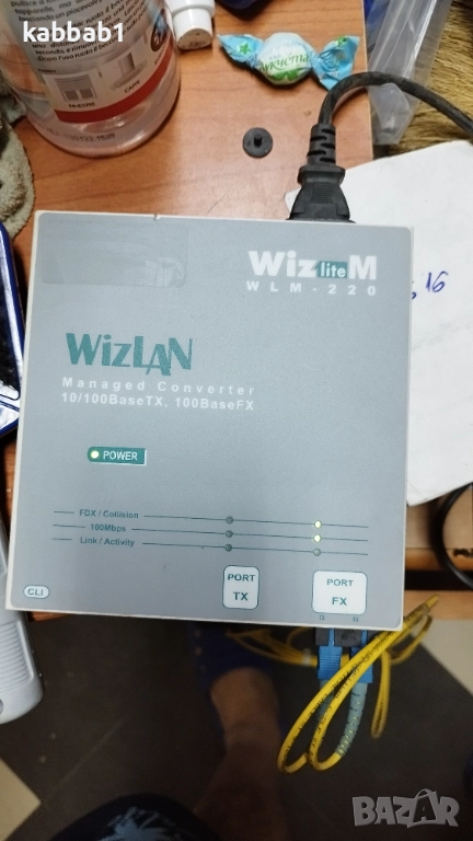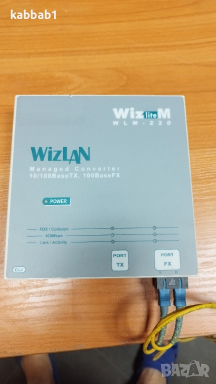 Продавам WLM-220 преобразувател на оптичен сигнал - влакна Wiz lite M - конвертор Wizlan е напълно управляван двускоростен самостоятелен преобразувател със силно защитени възможности за управление в/извън лентата. Двускоростен конвертор 10/100BaseTX към 100BaseFX. Конвертора е изрелско производство.