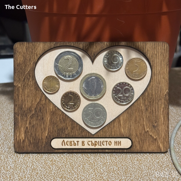 Важно: Монетите на снимките са само за демонстрация и не са включени в изделието и в цената. Законът забранява продажбата, преработката и обработката на парични знаци - предлагаме единствено дървеното изделие