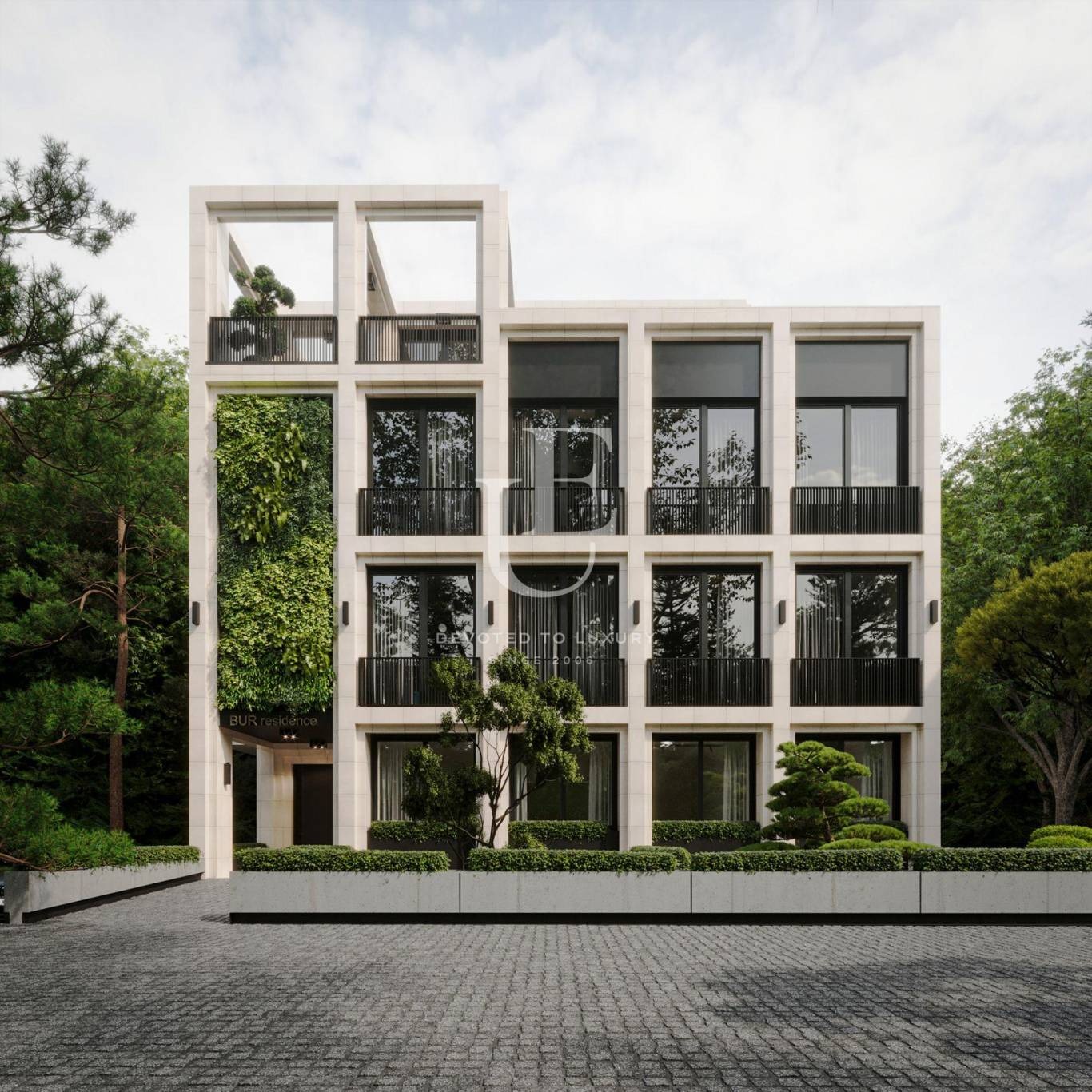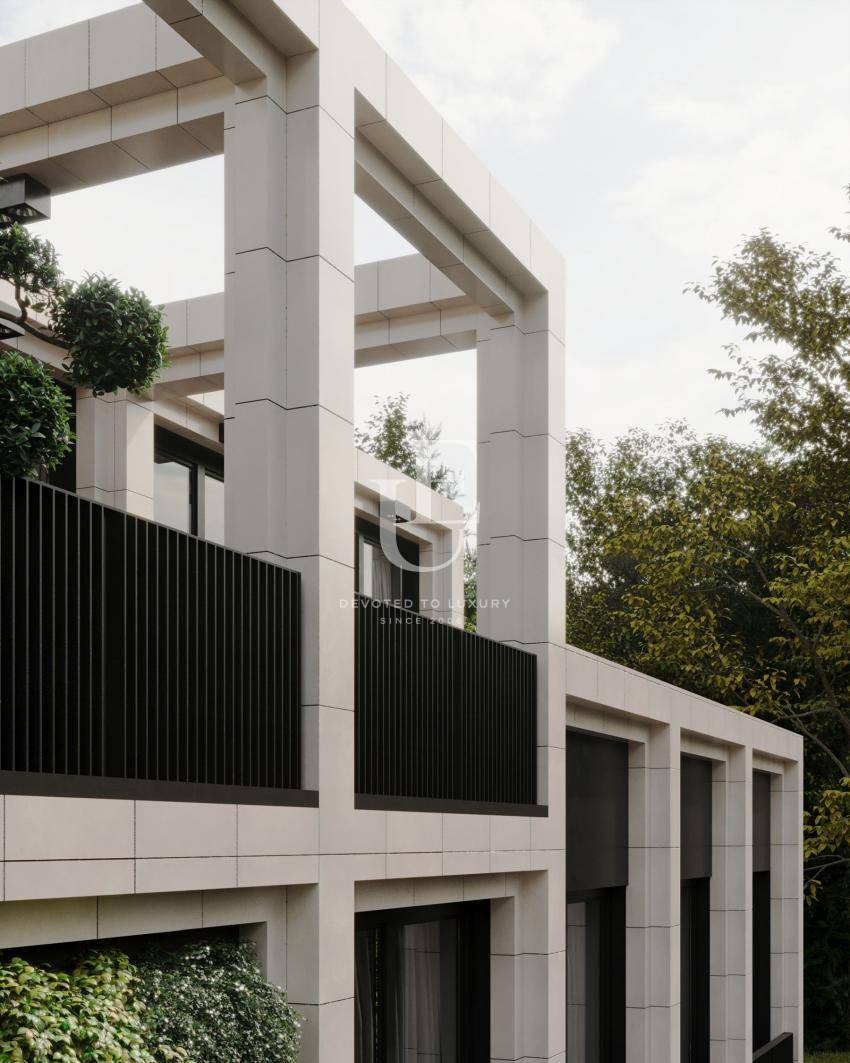 Сградата е бутикова и се състои от само шест апартамента и подземен паркинг със 7 места и 4 гаража. Жилищата предлагат функционални и удобни разпределения с рационално усвояване на пространствата и светла височина от 2,90 м. Апартаментът е с три спални и е разположен на партерен етаж, като към него има огромен собствен двор, което придава усещане за къща в центъра на града.