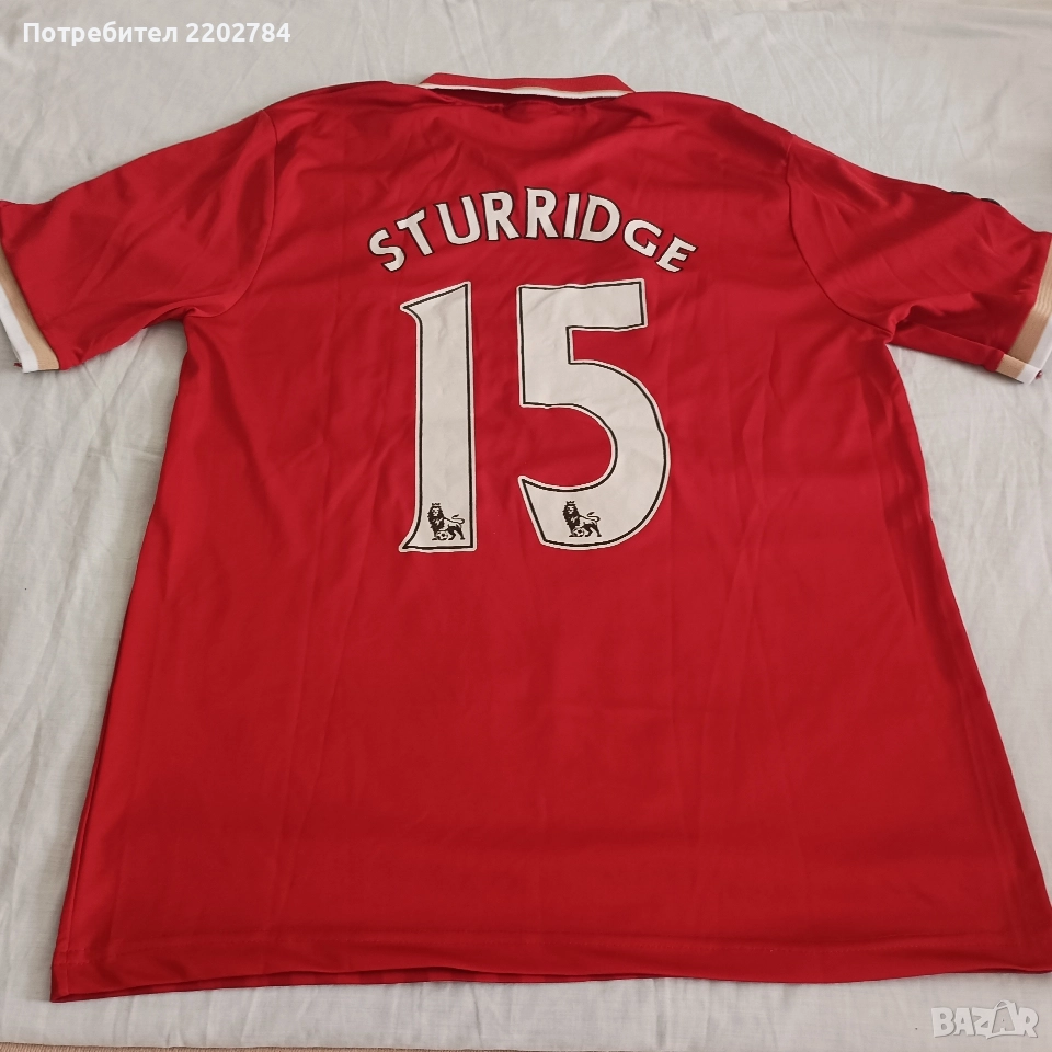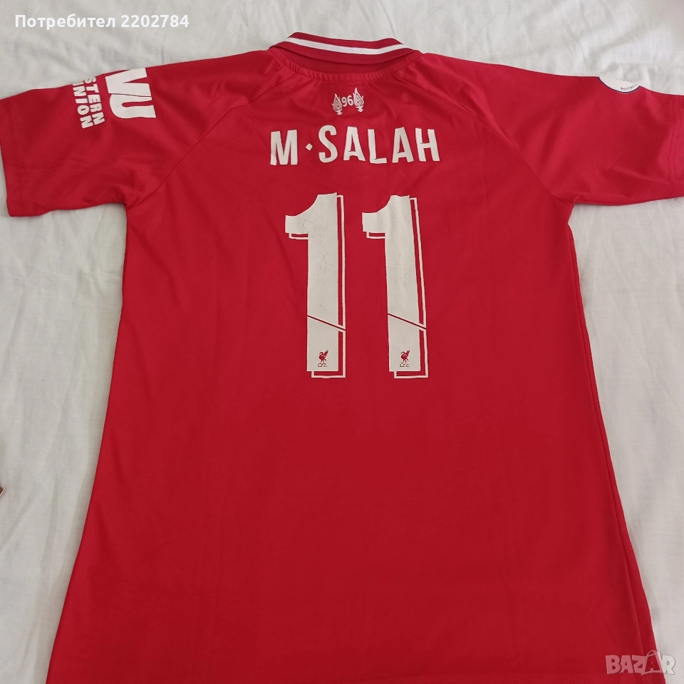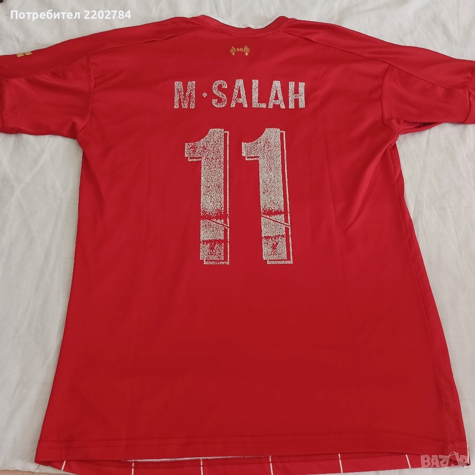 Снимки 1 до 3 включително - юбилейна тениска на Ливърпул.Гръдна обиколка 120см, дължина 75см,размер Л/ХЛ.Нова,без етикет,без забележки. Цена 45 евро Снимки 4 и 5 - на Салах,с гръдна обиколка 96см, дължина 70см,размер S .Има изтриване на латекса на надписите. Цена 5 евро Снимки 6 и 7 - на Стъридж,нова ,без етикет.Гръдна обиколка 104см,дължина 70см.Размер М.Без забележки. Цена 10 евро Снимки 8 и 9 - има леко напукване на латекса.Гръдна обиколка 102см, дължина 74см.Размер М. Цена 10 евро Снимка 10 - ретро модел,без име на гърба,без забележки.Гръдна обиколка 100см, дължина 67см.Размер М. Цена 10 евро Снимка 11 - тъмно сива,изтриване на латекса.Гръдна обиколка 96см, дължина 65см,размер S. Цена 5 евро. Снимка 12 - също ретромодел.Има леки надърпвания.Гръдна обиколка 88см, дължина 60см.Размер S. Цена 5 евро Снимка 13 - Дирк Кайт,Kuyt - също с леки надърпвания.Гръдна обиколка 92см, дължина 58см.Размер S. Цена 5 евро Снимки 9 и 10 - Ми.Салах,M.Salah.Гръдна обиколка 84см, дължина 62см, размер XS. Цена 5 евро Снимка 16 - Elias - напукване на латекса.Гръдна обиколка 80см,дъъ57см, размер XS. Цена 5 евро Снимка 17 - лилава,без забележки Ми.Салах,M.Salah.Гръдна обиколка 80см,дъъ60см,размер XS. Цена 5 евро Снимка 18 - Virgil,Върджил ван Дайк.Има леко напукване на латекса.Гръдна обиколка 84см, дължина 55см.Размер XS. Цена 5 евро Тениските с размер XS са детски модели. При интерес пращам допълнително снимки.