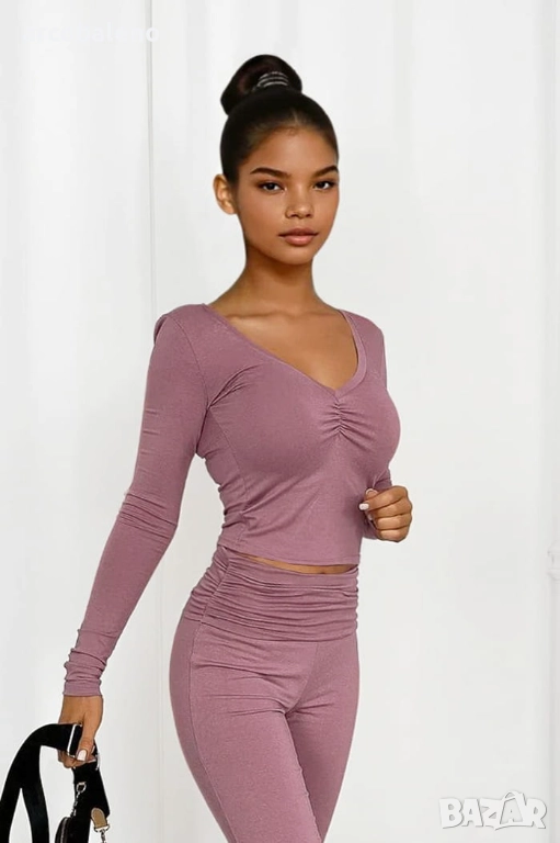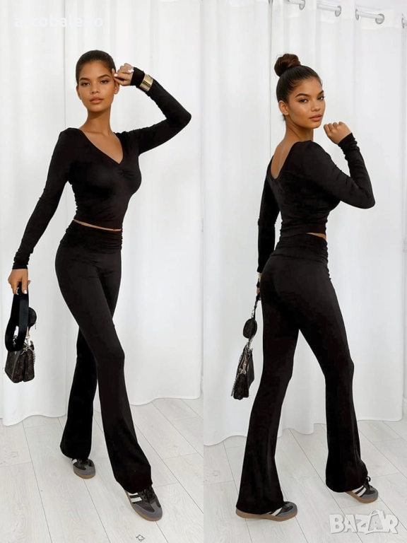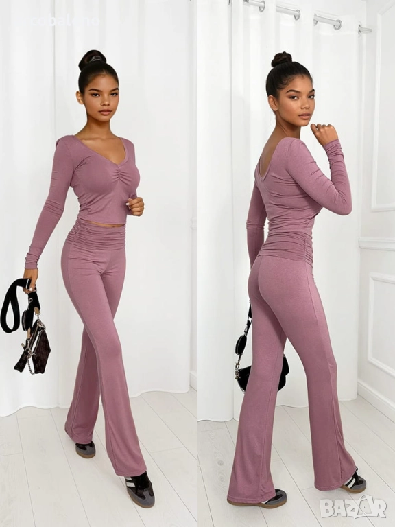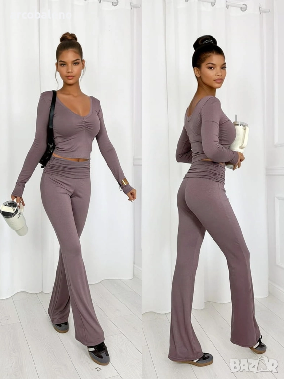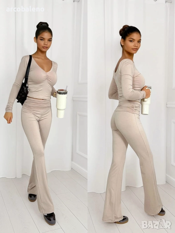 Този комплект е комбинация от минимализъм, комфорт и елегантност. Можете да носите всяка част и поотделно – съчетайте блузата с дънки или панталона с топ или риза. По този начин можете да създадете множество визии само с един тоалет.