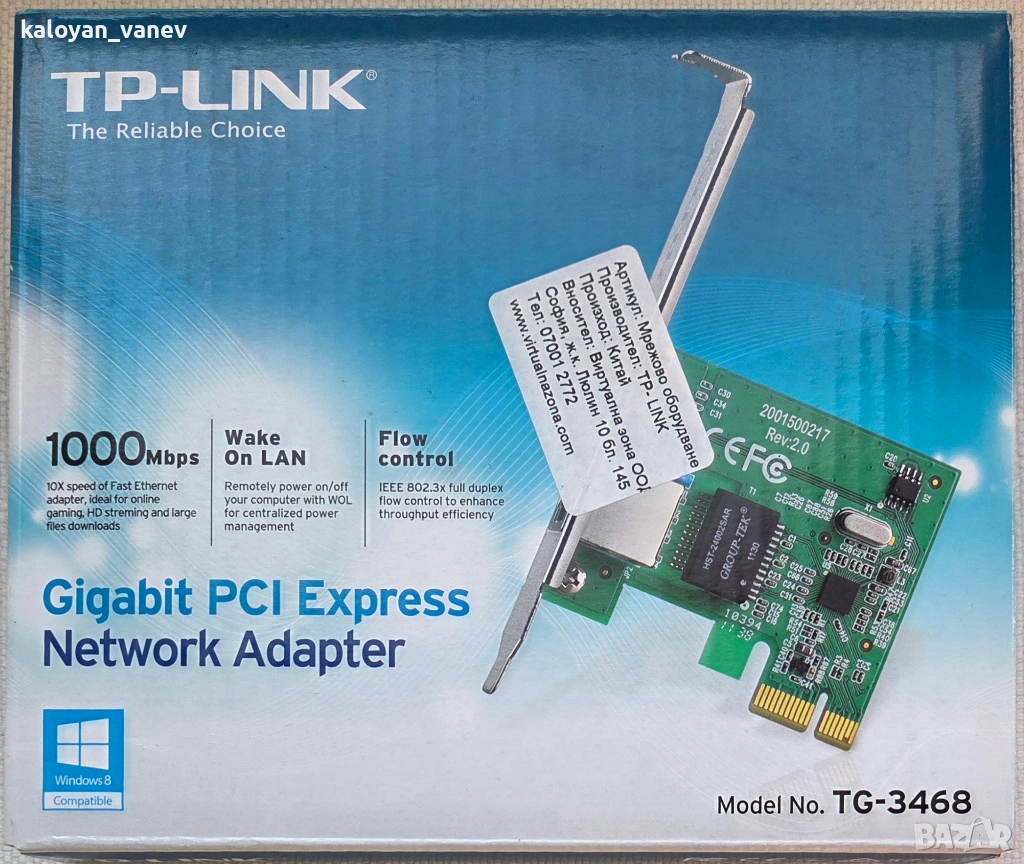Мрежова карта LAN Card PCIe 1000Mbps, снимка 1 - Други - 52997460 Мрежова карта LAN Card PCIe 1000Mbps, снимка 2 - Други - 52997460 1/2