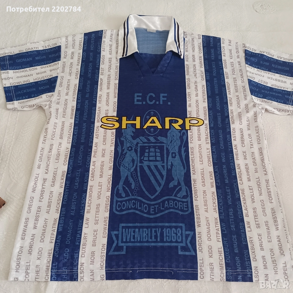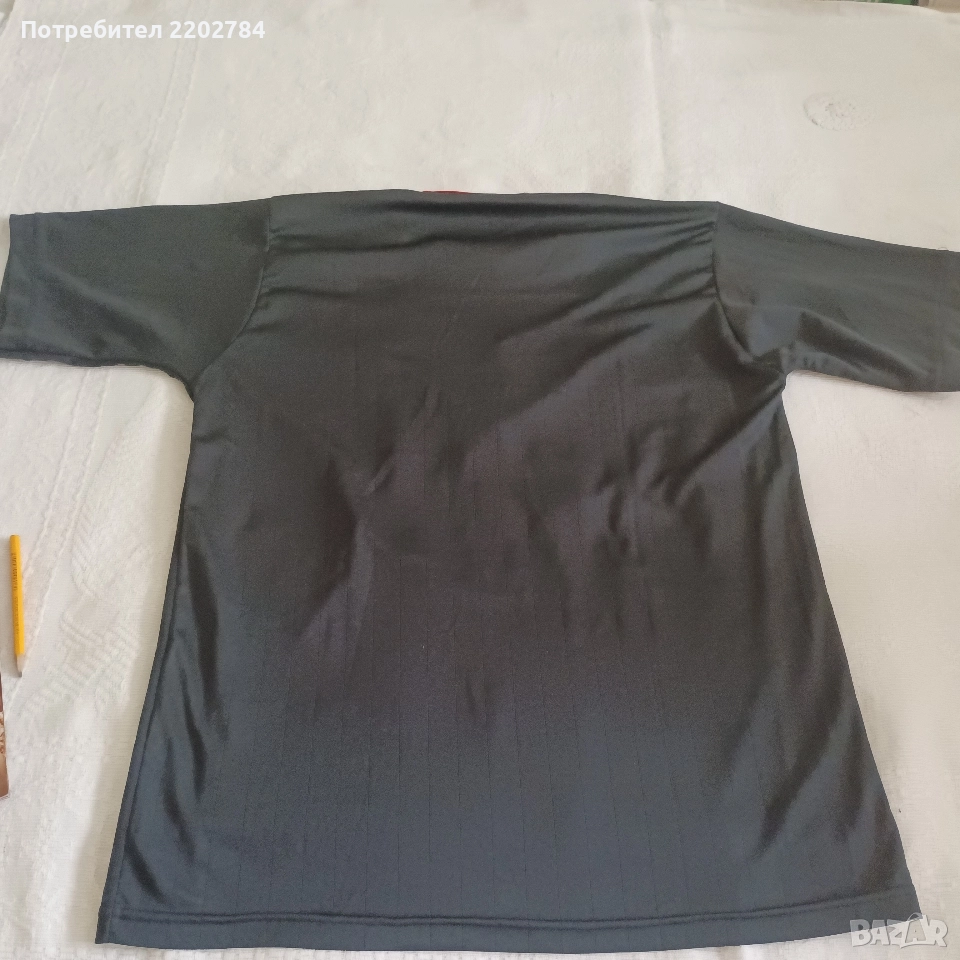 Снимки 1 и 2 - оригинална юбилейна тениска,двулицева.Единствена забележка - леко изтриване на малката емблема на тила от златната страна.Гръдна обиколка 88см, дължина 60см, размер S.