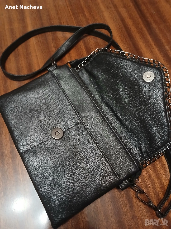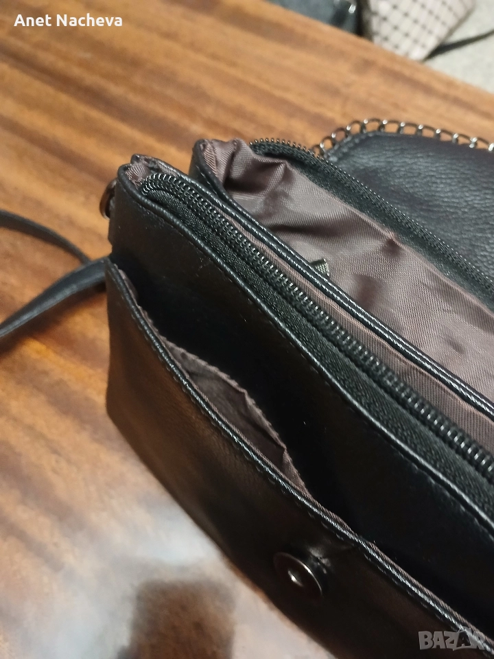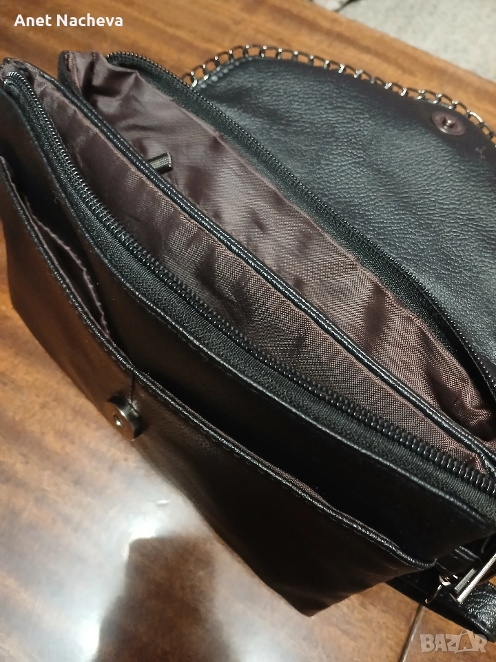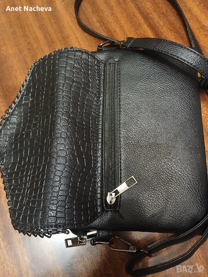 Елегантна чанта,олекотена, с 9 броя джобчета, практична, с интересна украса на капаче, размери - 22см / 16 см