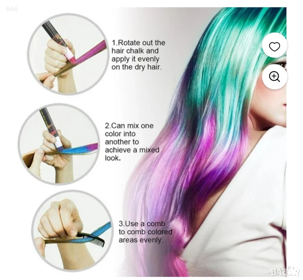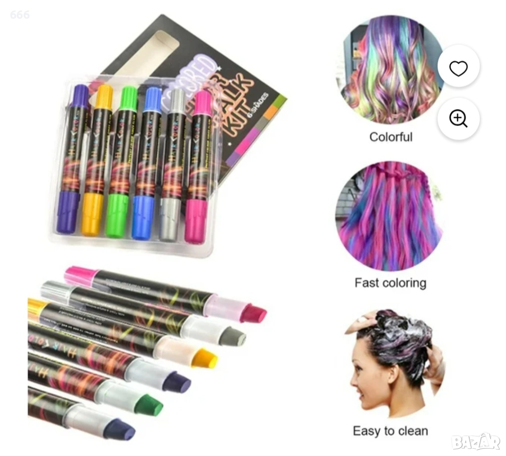 Комплект тебешири за коса с 6 цвята → Обява 52997830
