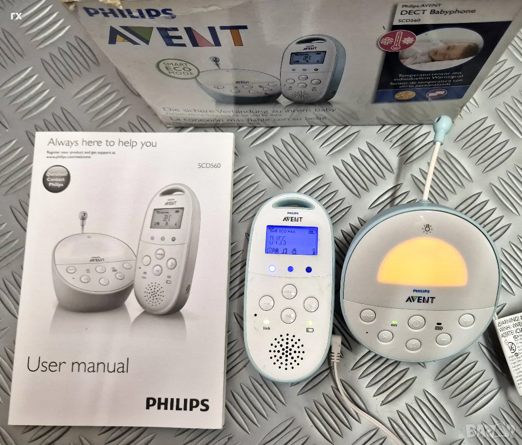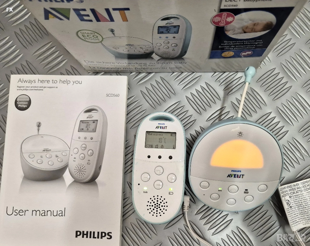 PHILIPS AVENT SCD560/00 Бебефон DECT 560 в добро състояние, комплект с 2 адаптера, работи на батерии и адаптери