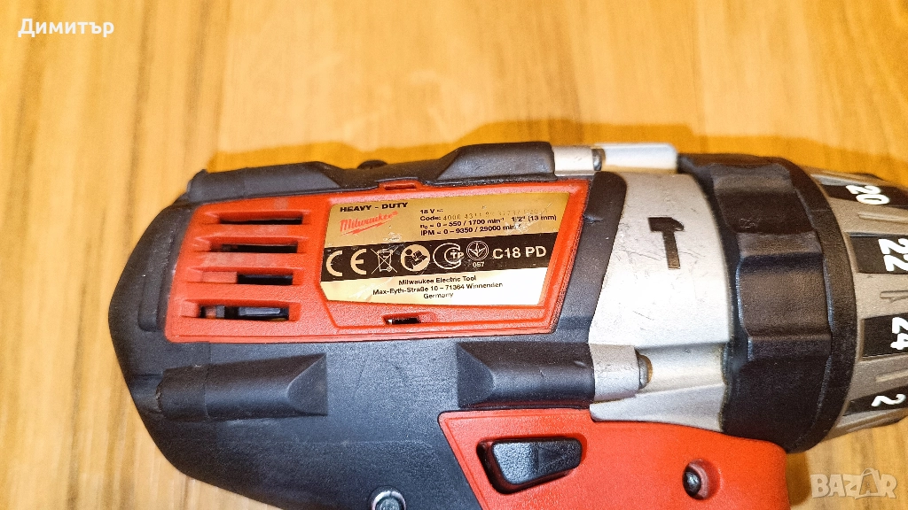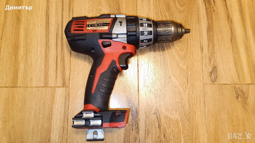 Само тяло, без батерии и зарядно. Отлично състояние, напълно изправно. Винтоверта има ударна функция за пробиване. Модела е с четков мотор, като пакета четки е почти на 100%. В комплект със скоба за окачване на колан и държач на битове.