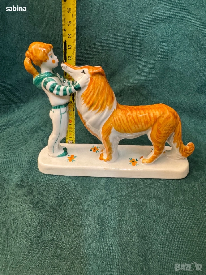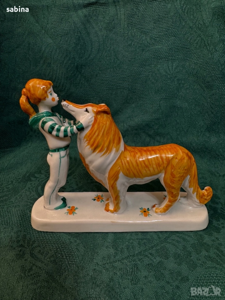 Руска Рядка Статуетка „Момиче с куче“, Дулевский фарфоровый завод (Дулево), СССР, 1968-1991 г. → Обява 52998907