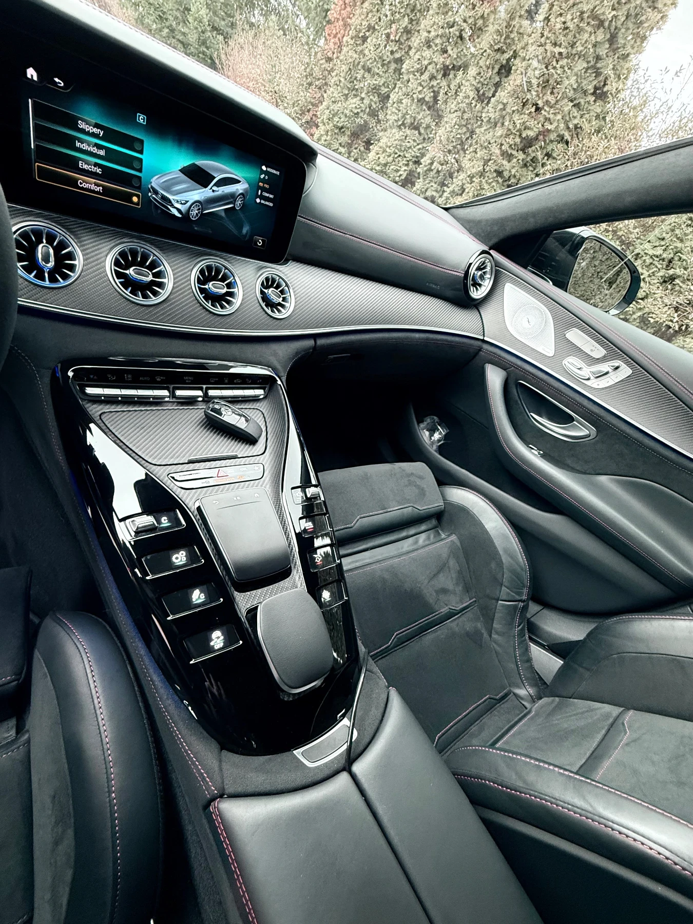 Възможен лизинг със и без доказване на доходи! Минимална първоначална лизингова вноска 25% срок на изплащане до 60мес. ! Автомобилът е гаранционен до 10. 2027г. Цвят: China Blue AMG Racing аеродинамичен комплект, пакет Air Balance, декоративни ленти, осветени AMG прагове на вратите, система за подпомагане на водача: разпознаване на пътни знаци, пожарогасител, система с 360-градусова камера, AMG светлинен дизайн (странични прагове с функция за прожектиране), пакет Memory, металическа боя, AMG Night пакет, Night пакет II, комплект за ремонт на гуми (Tiremont), интегрирана интеграция със смартфон, механична сенник за задния прозорец, AMG спортни гуми, AMG Performance спортни седалки Допълнително оборудване: Пакет за съхранение, въздушни възглавници за водача/пътника, амбиентно осветление (разширен обхват), AMG Dynamic Plus пакет, AMG Track Pace (приложение), аудио система Audio 20 (USB, GPS), система за зареждане с променлив ток (AC), LED мигачи с последователно осветление, DAB тунер (цифрово радио приемане), стандартен дизайн и линия на оборудване, динамични опори на двигателя, 150 kW електрически двигател (хибридно задвижване), система за асистенция на шофирането: Agility Select / Dynamic Select (селектор за режим на шофиране), система за асистенция на шофирането: активен спирачен асистент, система за асистенция на шофирането: активен асистент за поддържане на лентата, система за асистенция на шофирането: адаптивен асистент за дълги светлини plus, система за асистенция на шофирането: асистент за ограничаване на скоростта, система за асистенция на шофирането: система за информация за трафика в реално време, електрически стъкла отпред и отзад, AMG стелки за пода, задна врата с автоматично отваряне и затваряне, AMG кормилно управление на задния мост, 620 kW хибрид (4. 0 L двигател - 470 kW), инфоразвлекателна система: Remote & Charging Services Plus, интериорна облицовка: черен цвят пиано, черен таван, 5-врата каросерия, керамична спирачна система (AMG), система за безключово стартиране, автоматичен климатик (Thermatic), 2-зонов климатик, въздушна възглавница за коленете от страната на пътника, въздушна възглавница за коленете от страната на водача, арматурно табло с променлив дисплей (широкоекранен кокпит), комуникационен модул (LTE), подготовка за Mercedes me connect, пакет за свързаност, система за въздушни възглавници за главата (windowbag), кабел за зареждане за обществени зарядни станции, кабел за зареждане с щепсел Schuko, волан с лостчета/бутони за превключване, поцинкован, алуминиев джанти, медиен дисплей, фейслифт с код, многолъчеви LED фарове, навигационна система: навигация с твърд диск, филтър за твърди частици (GPF), пакет за паркиране, пакет за обществено зареждане, система за следене на налягането в гумите, ниски емисии съгласно емисионния стандарт Euro 6d, отопляема система за измиване на предното стъкло, предни странични въздушни възглавници, странични прагове в цвета на каросерията, тапицерия на седалките: кожа Nappa, отопляеми предни седалки, пакет огледала, спортна изпускателна система (AMG Performance), спортно окачване (AMG Ride Control +), система за гласово управление с разширени функции (MBUX), 12V контакт в багажника/товарното отделение, система за съраунд звук, озвучителна система Burmester, тъчпад (централна конзола), USB портове, подготовка за навигационна система (Garmin MAP Pilot), подготовка за цифрово радио