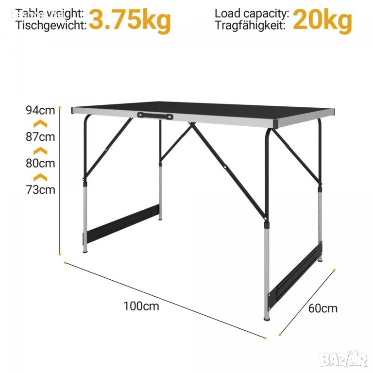 Размери на масата: 100 x 60 x 73-94 см (д x ш x в)