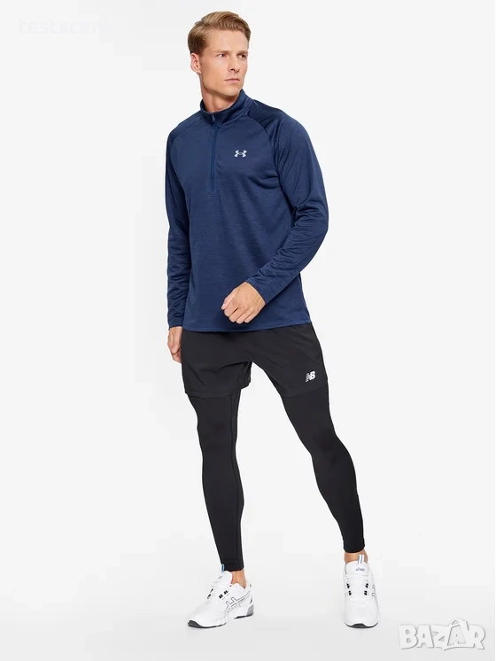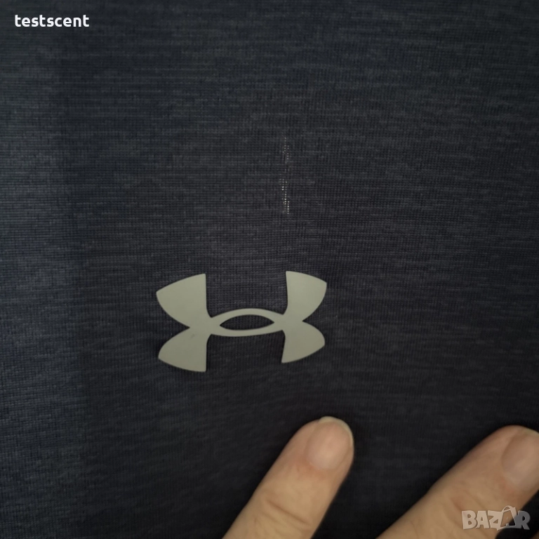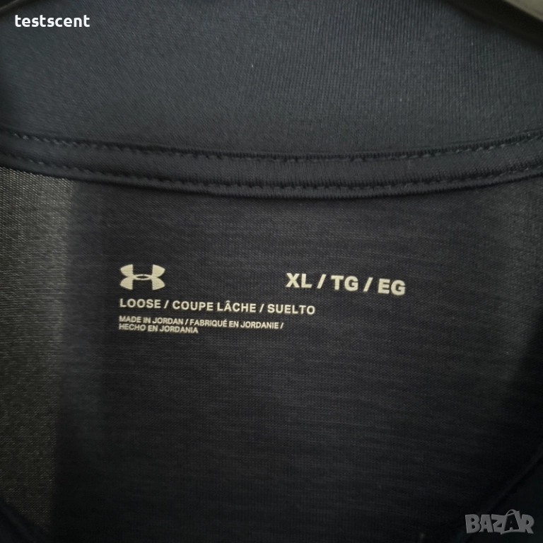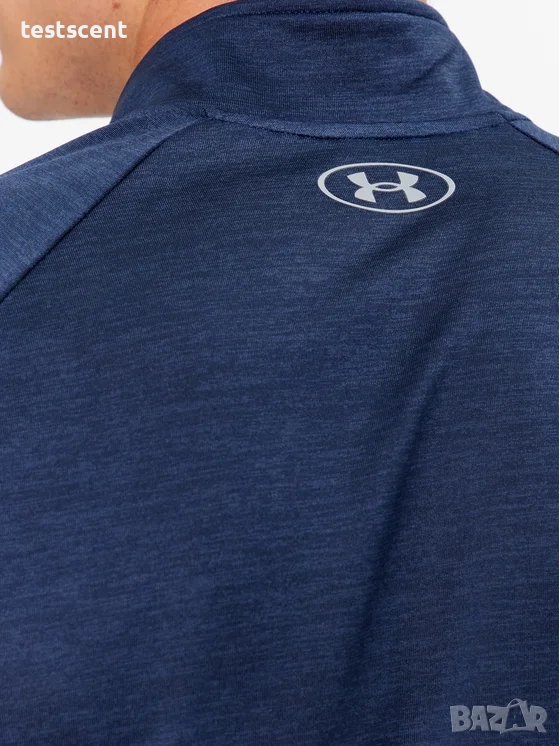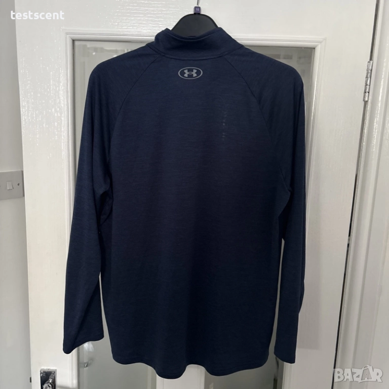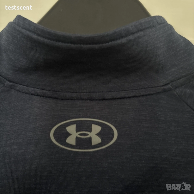 Продавам оригинална Under Armour блуза с дълъг ръкав 1/4 Zip (къс цип), размер XL, кройка Loose, цвят син/тъмносин. Подходяща за спорт, фитнес, бягане и ежедневие – удобна и лека за носене.
