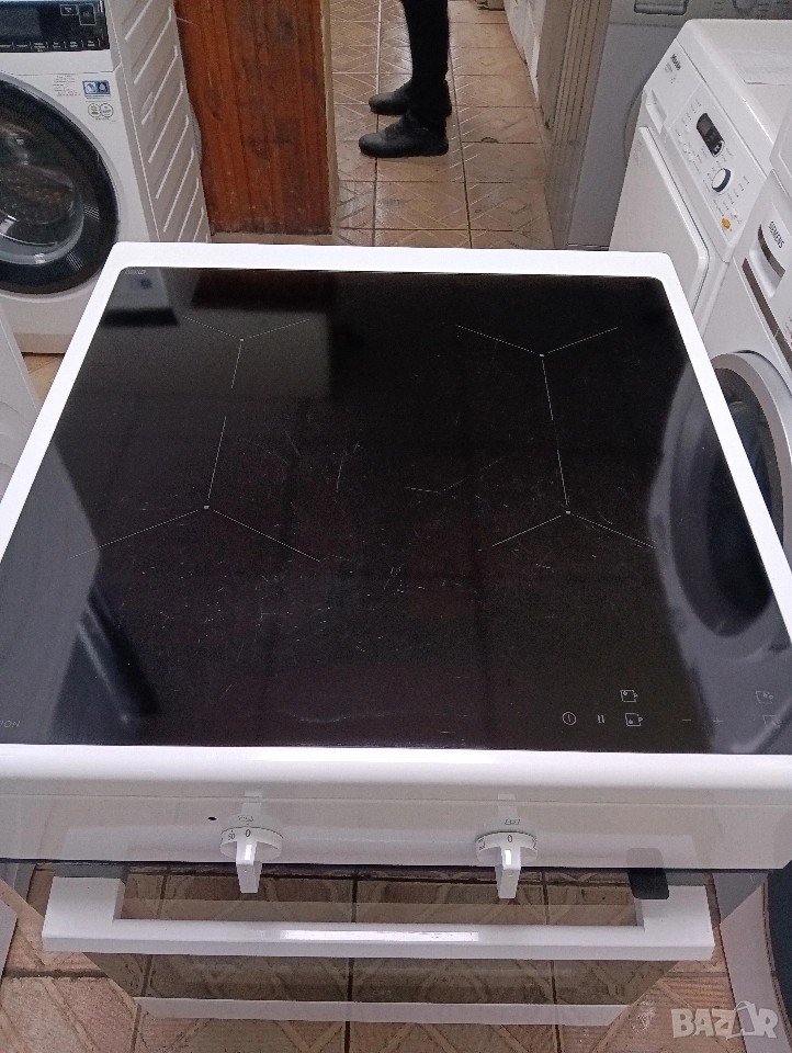 Страхотна печка широка 60 см. с индукционни котлони, вентилатор, грил , тъч скрийн управление на котлоните и др.