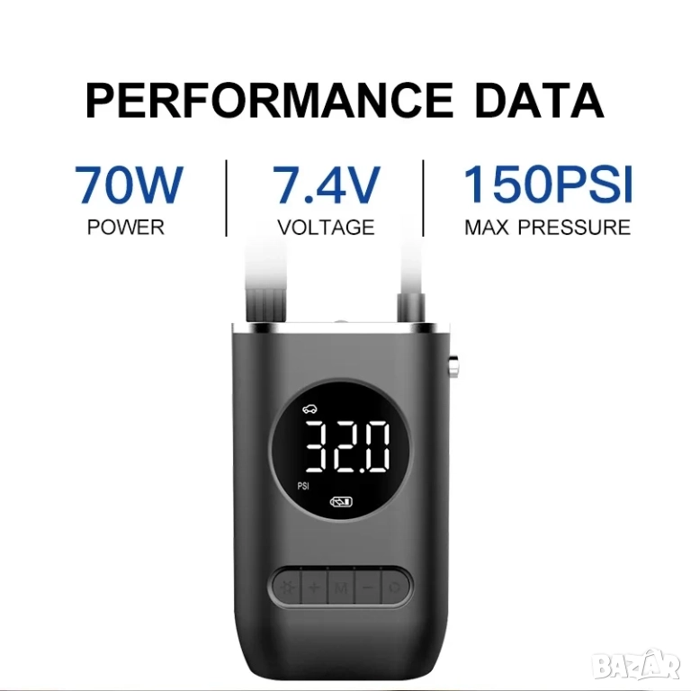Преносим акумулаторен компресор с цифров дисплей и интелигентни функции MK3668