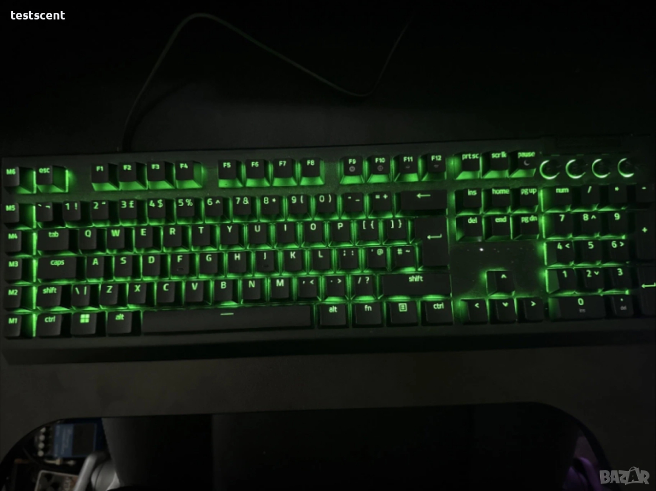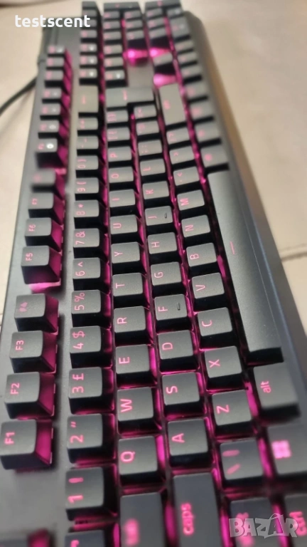 Продавам геймърска механична клавиатура Razer BlackWidow V4 с Green механични суичове. Клавиатурата е предназначена за сериозен гейминг и интензивна работа, с ясно изразен тактилен и clicky feedback при натискане. Подсветката е с персонализируеми цветове, а QWERTY подредбата е с английски символи.