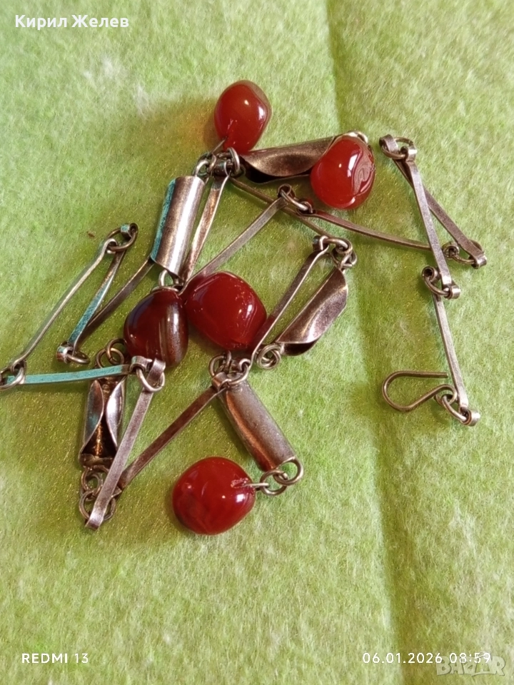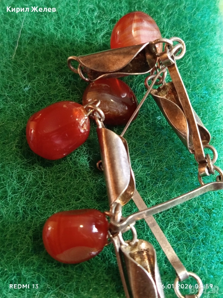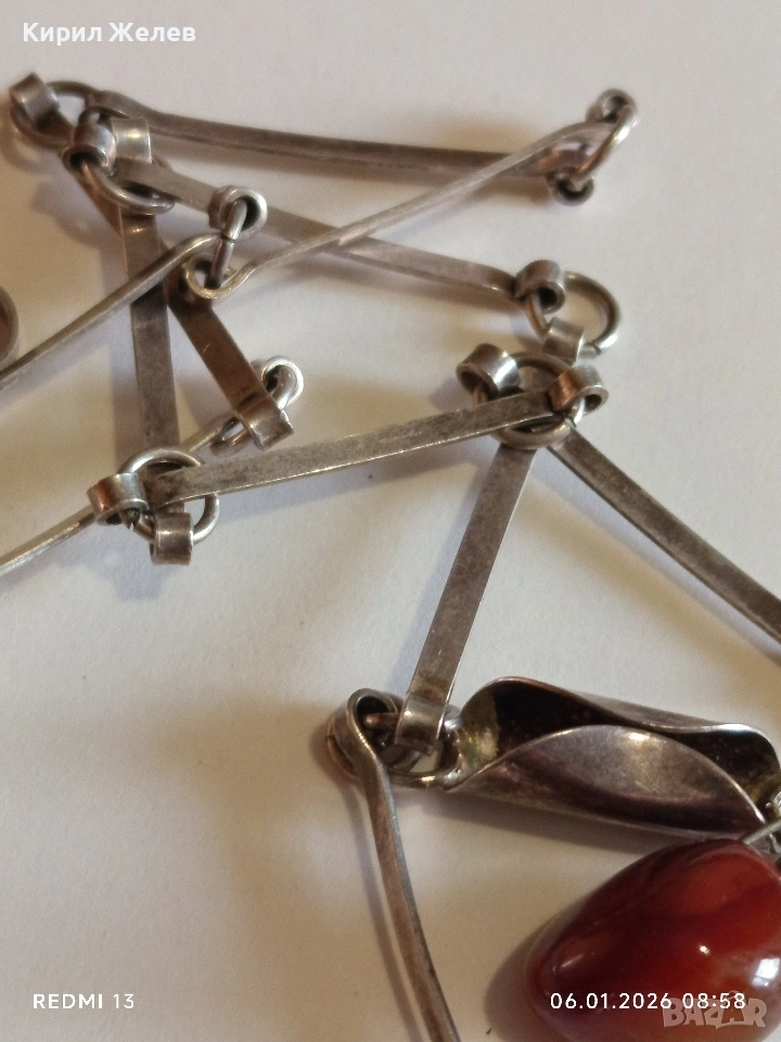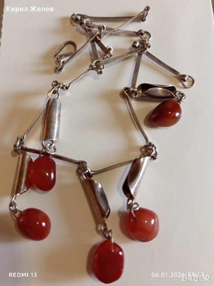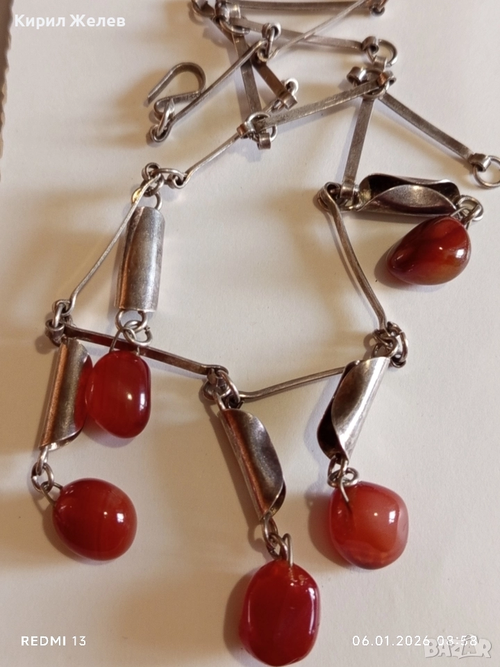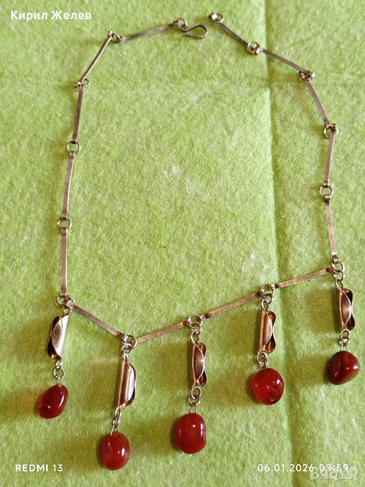 Качествено винтидж сребърно колие с КОРНЕОЛ ювелирна изработка 31343