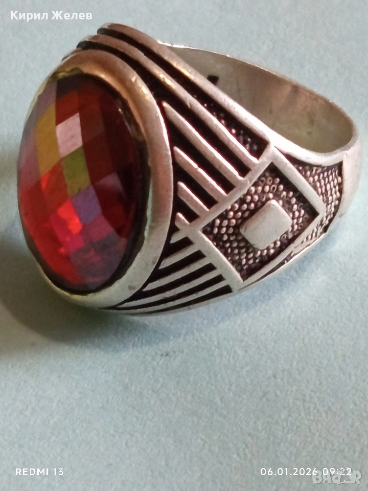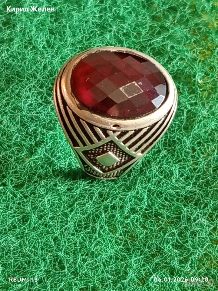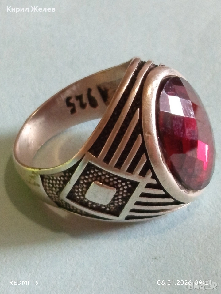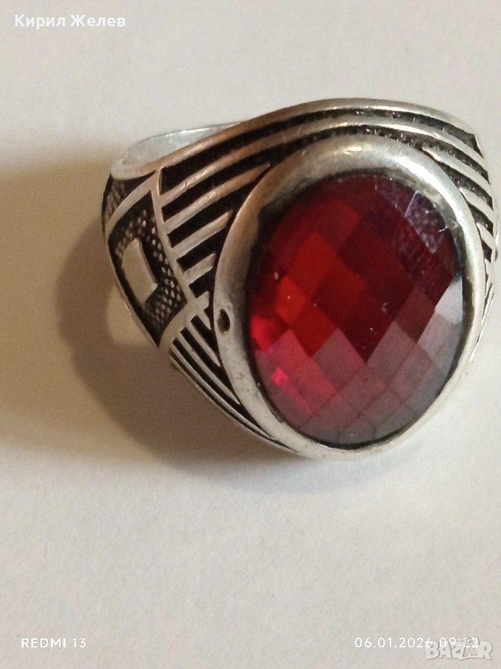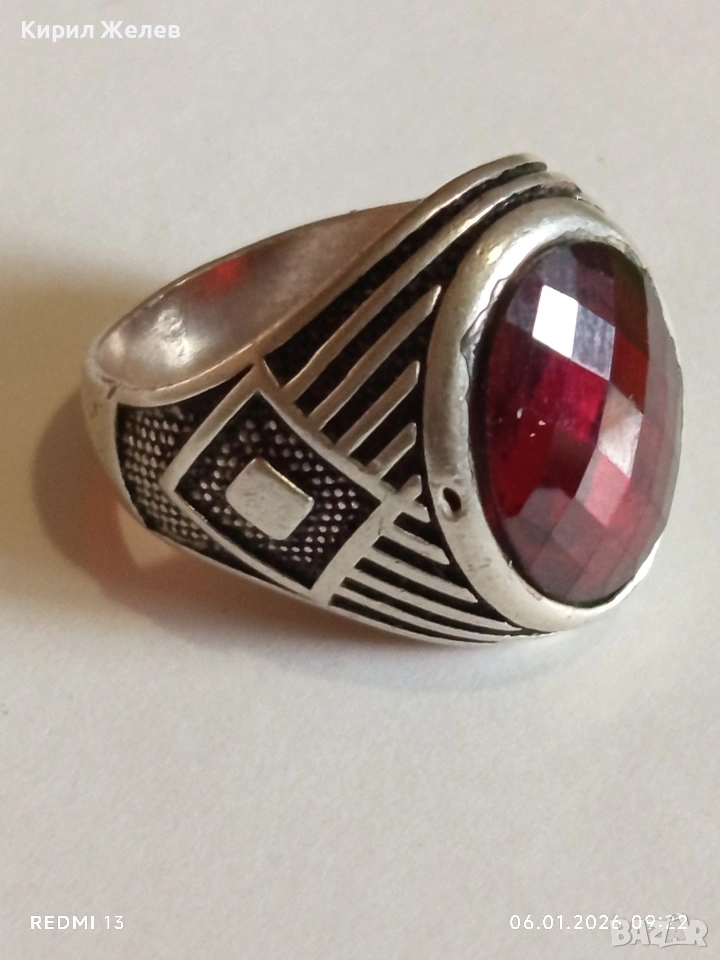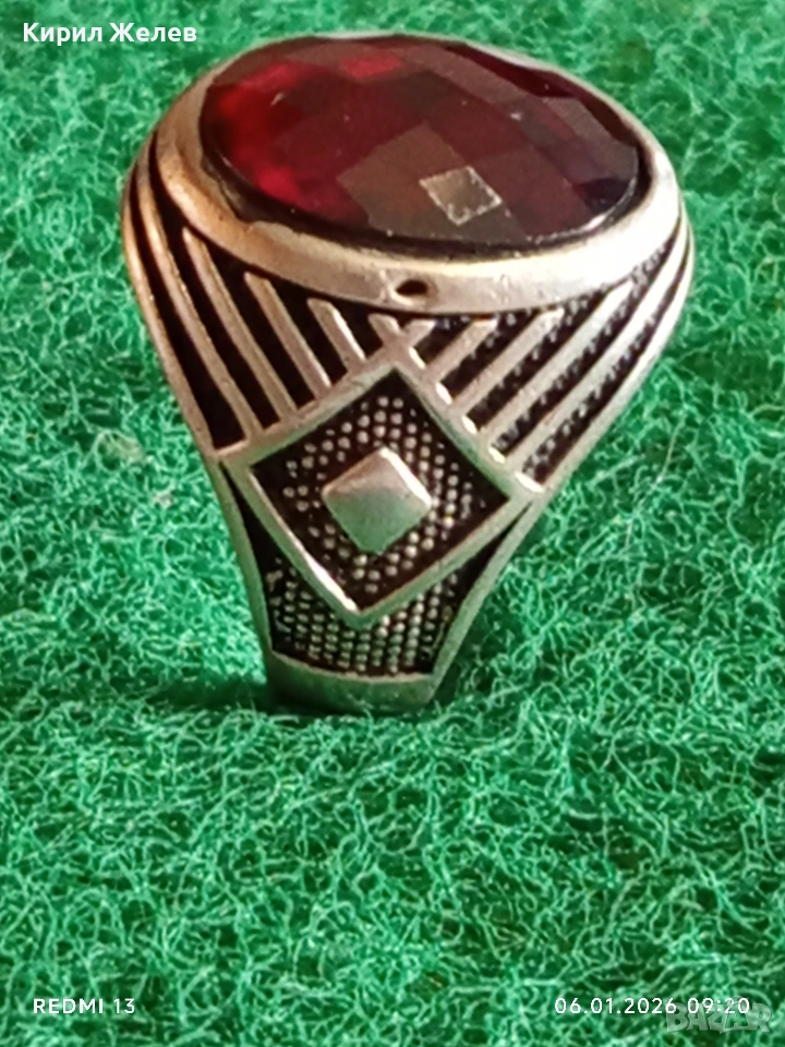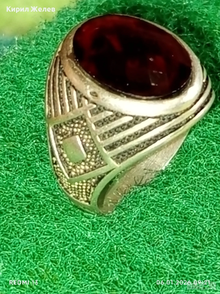 Арт Деко стил сребърен пръстен с ГРАНАТ орнаментиран майсторска изработка 51807