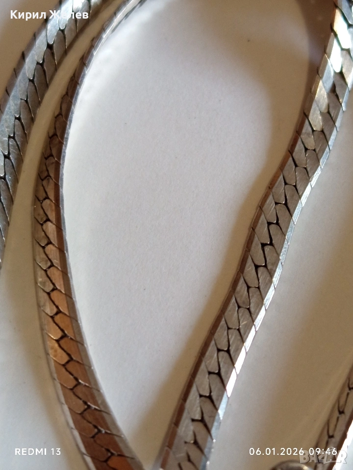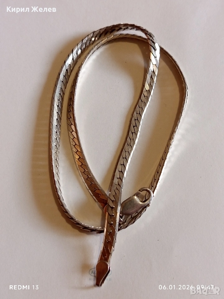 Класически и елегантен сребърен ланец плетка тип РИБЕНА КОСТ ювелирна изработка 25819