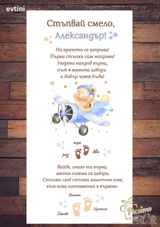 Към всяко платно, може да бъде изработено тематично боди, банер, карти за наричане/пожелания, етикети, тениски