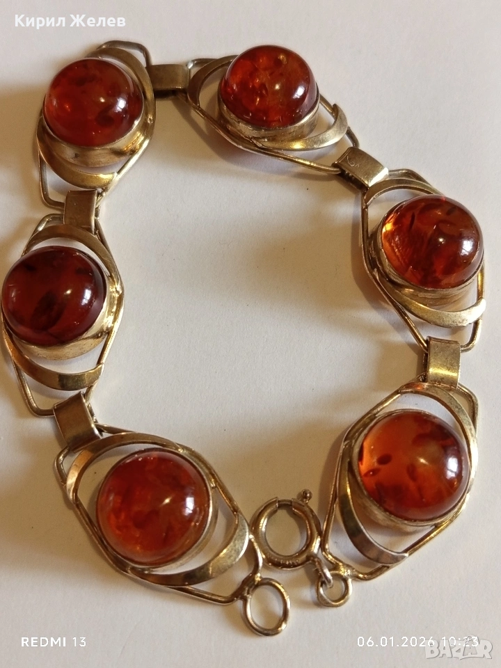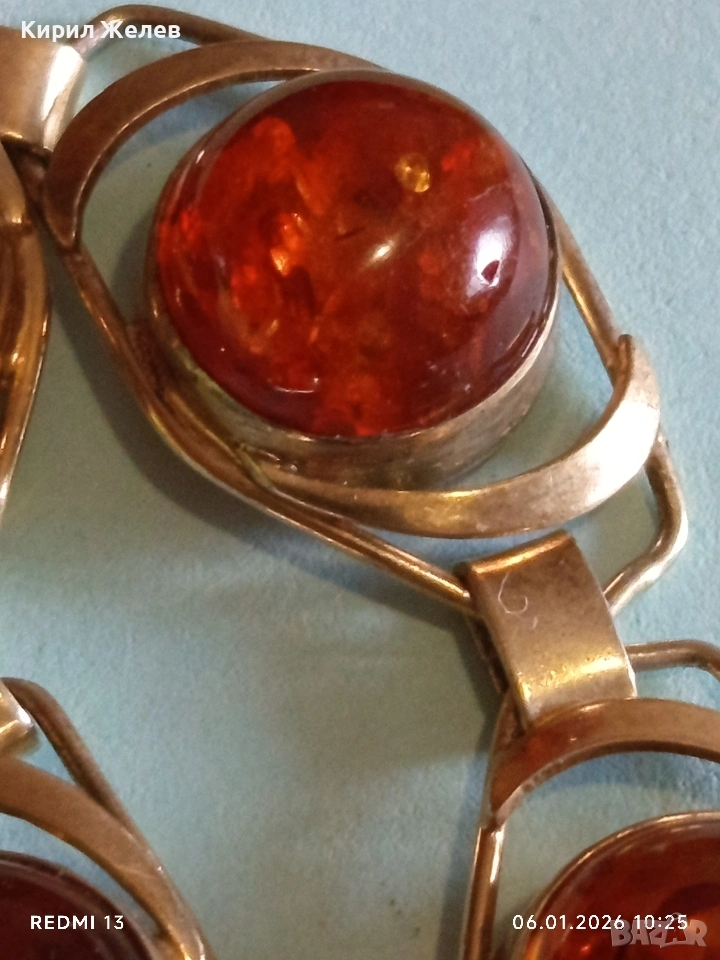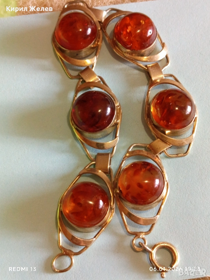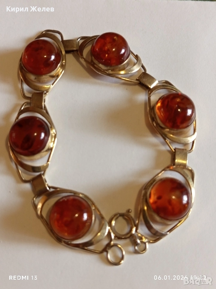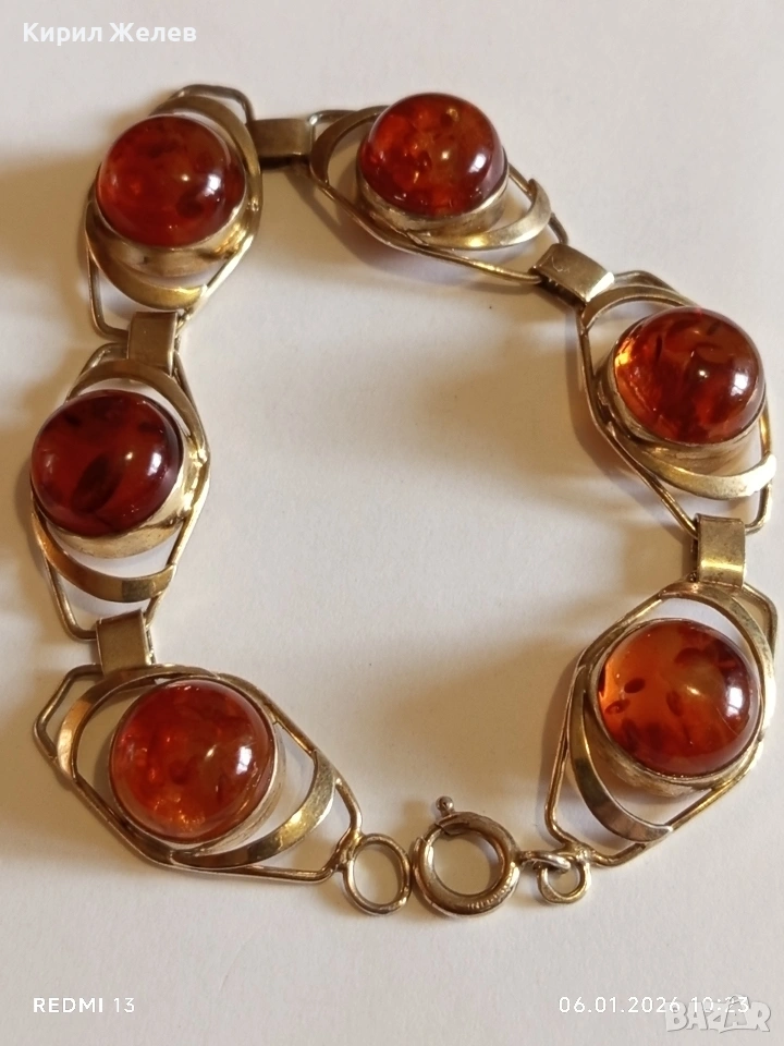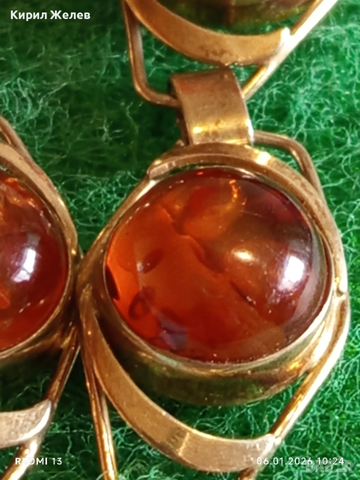 Винтидж сребърна гривна СССР с БАЛТИЙСКИ КЕХЛИБАР с позлата ювелирна изработка 32628