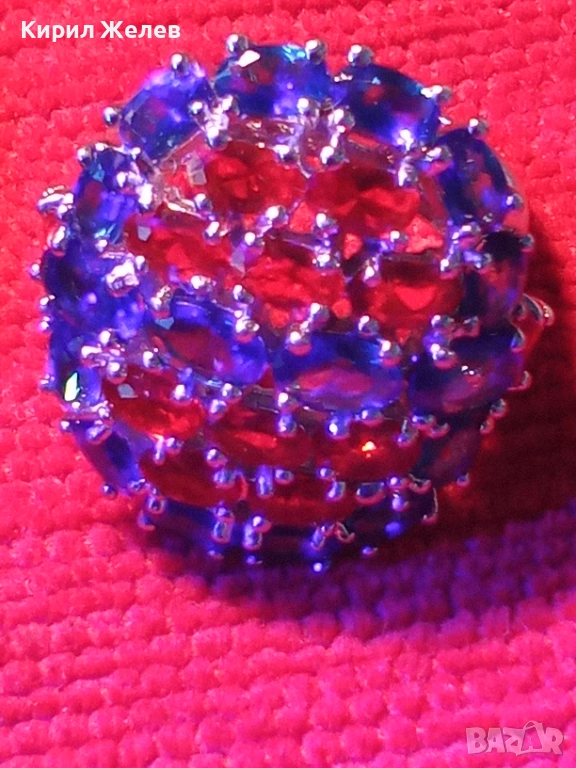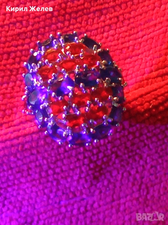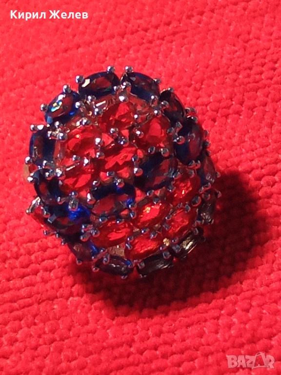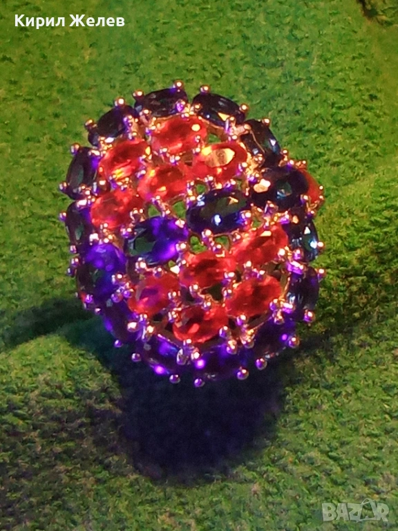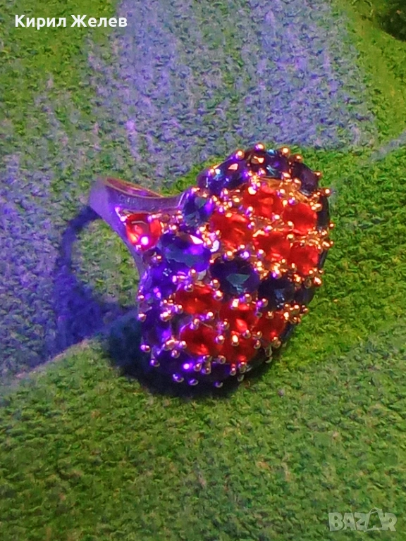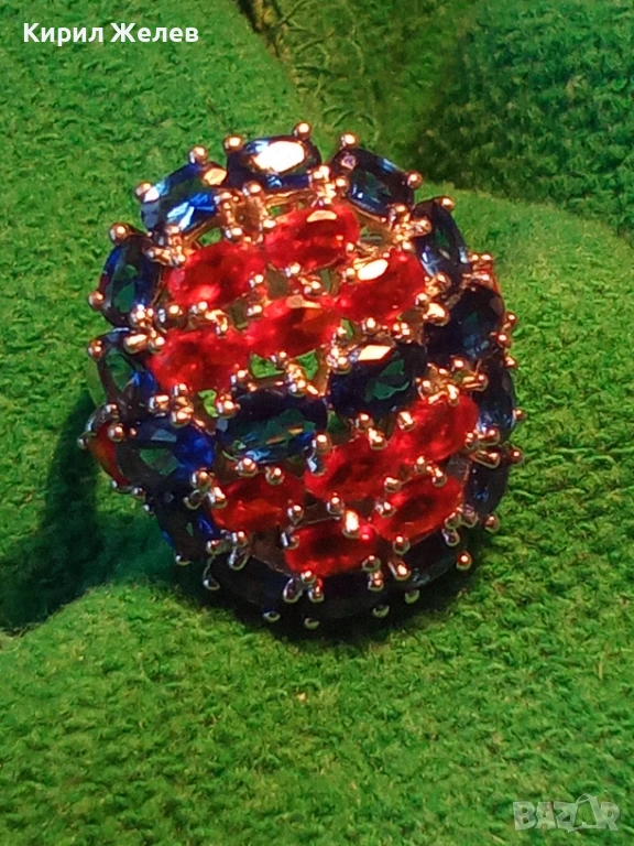Ефектен сребърен пръстен тип Коктейлен с Рубини и Сапфири за официални събития 51788