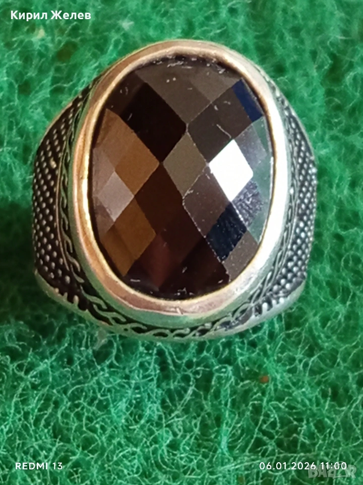 Сребърен пръстен лазерно гравиране с черен Турмалин с ярко изразена индивидуалност 52793