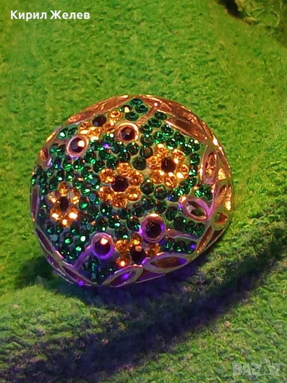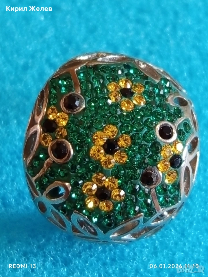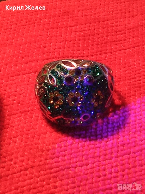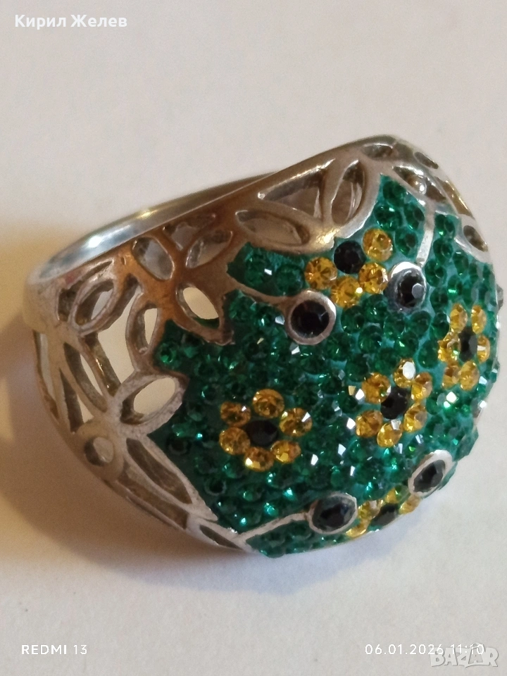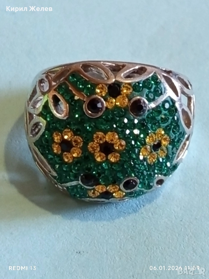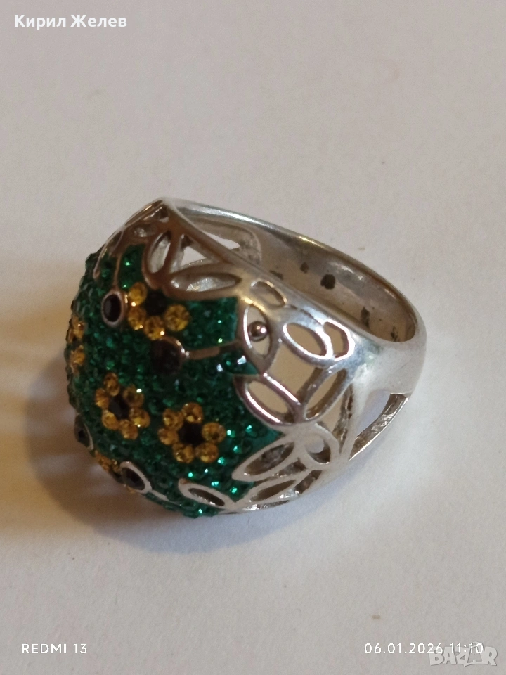 Ретро сребърен пръстен с флорален абстрактен дизайн с СМАРАГДИ, ЦИТРИН, ТУРМАЛИН Арт бижу 51817