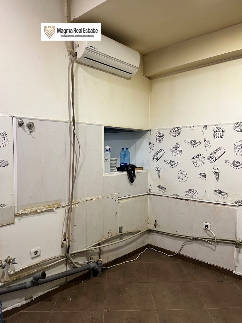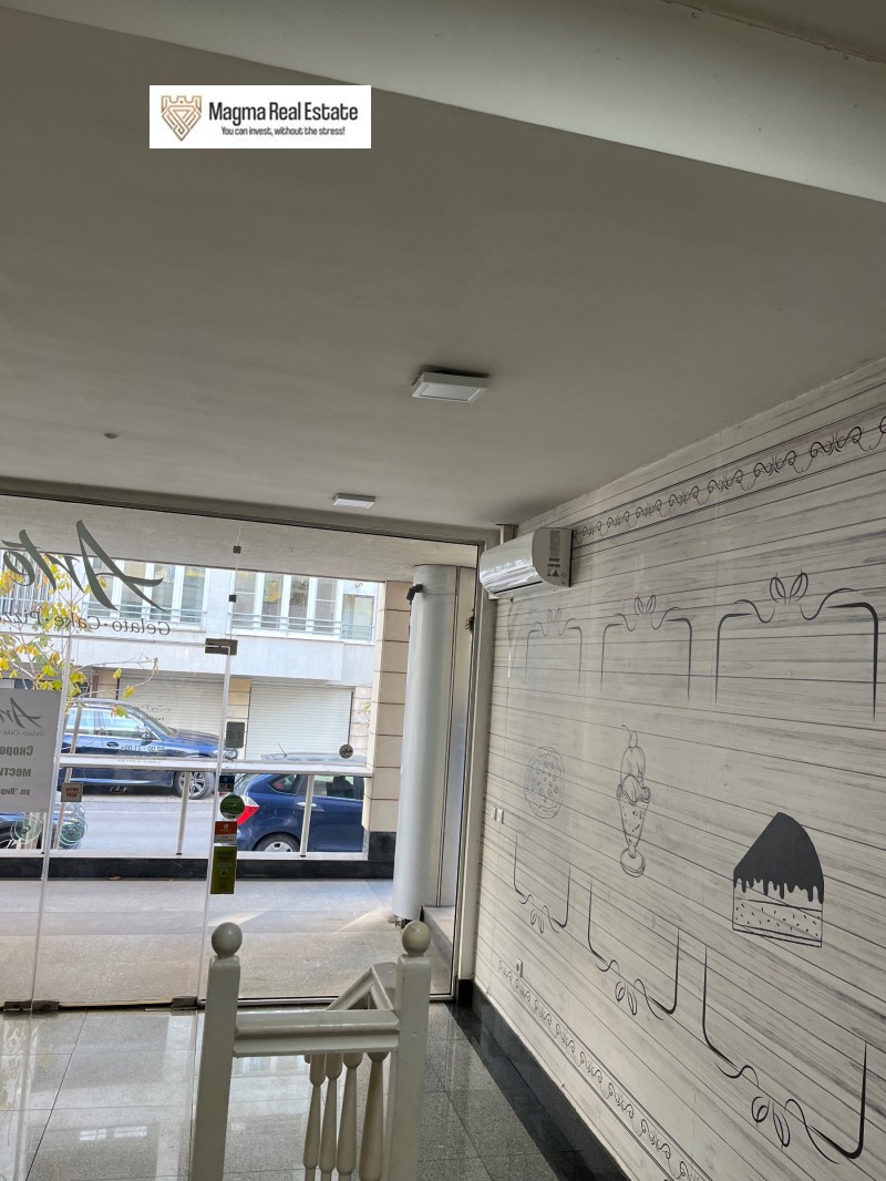 Отдава се под наем просторно търговско помещение кафе-сладкарница, с площ 130 кв.м, разположено на оживена улица в кв. Манастирски ливади запад, ул. Казбек.