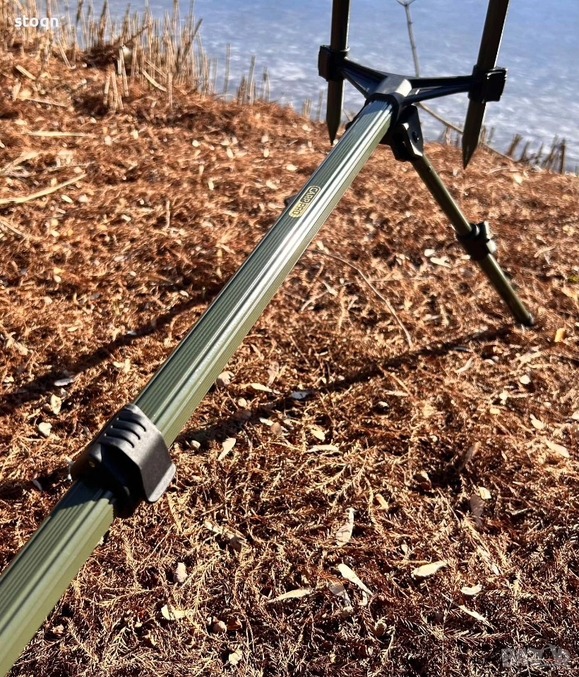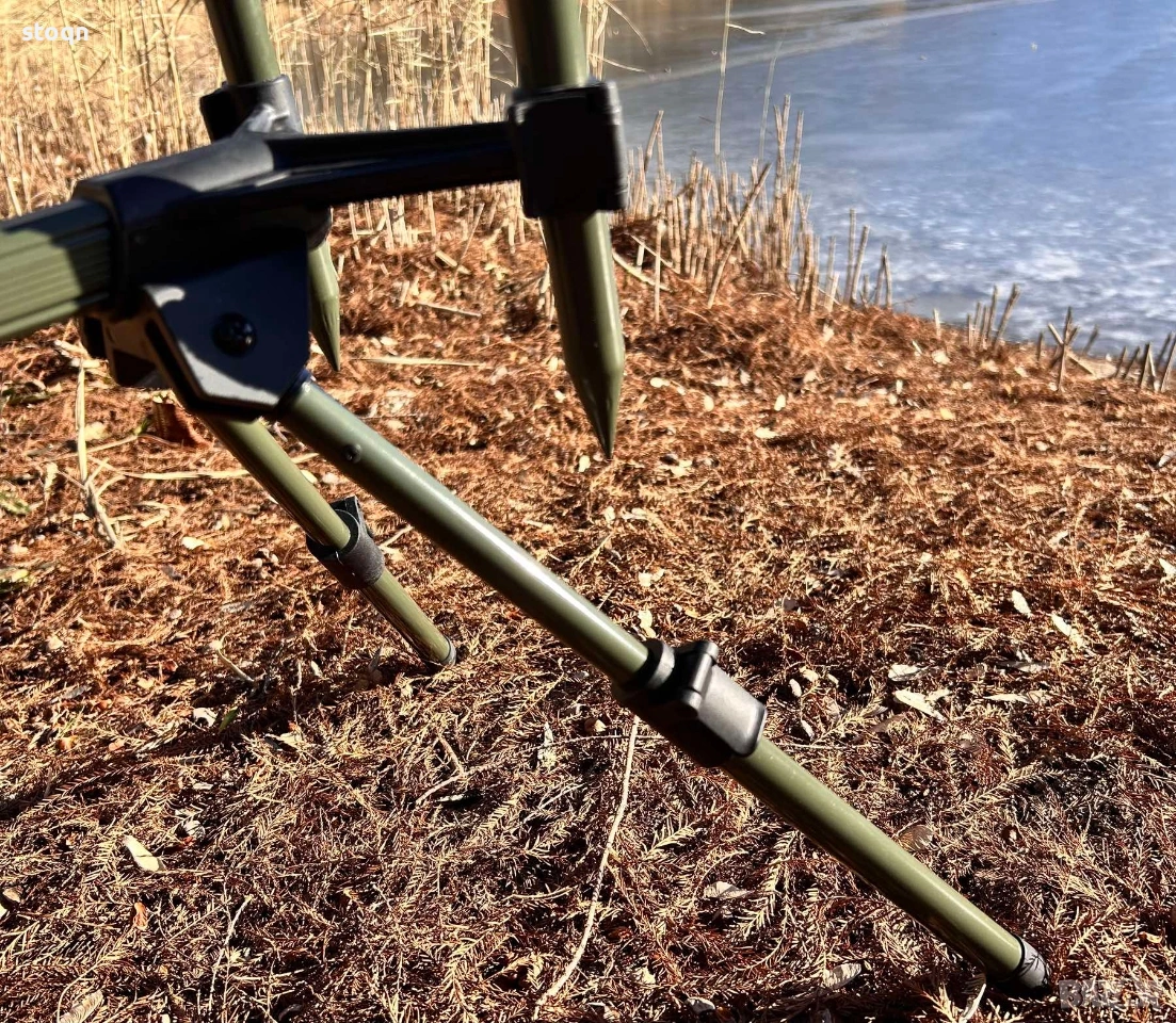 Стойката разполага с четири телескопични крака, които позволяват лесна и прецизна настройка на височината в диапазон 30–40 см, както и регулиране на дължината от 75 до 120 см. Това я прави подходяща както за брегови, така и за по-неравни риболовни места.