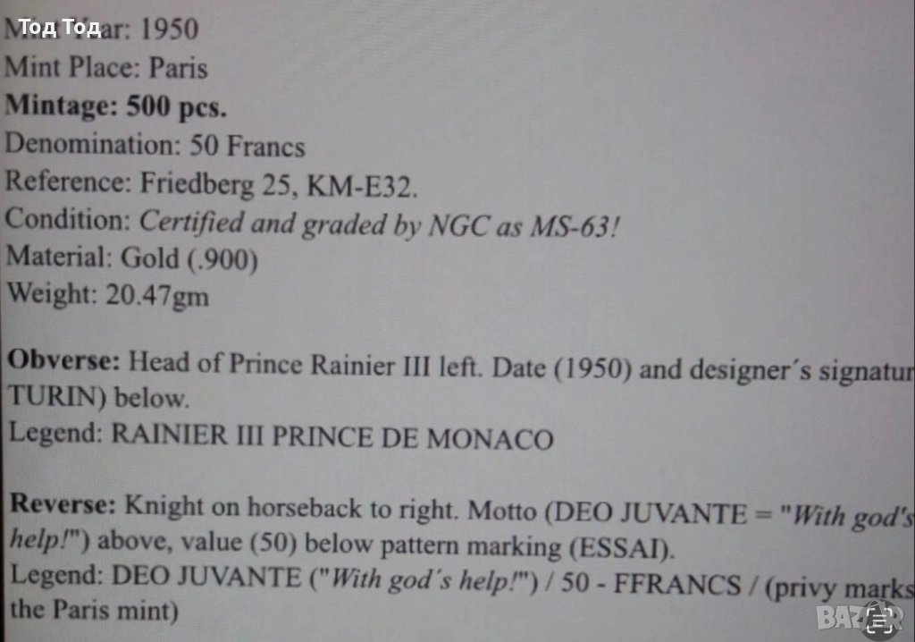 50 франка Есай 1950 Монако → Обява 53004310