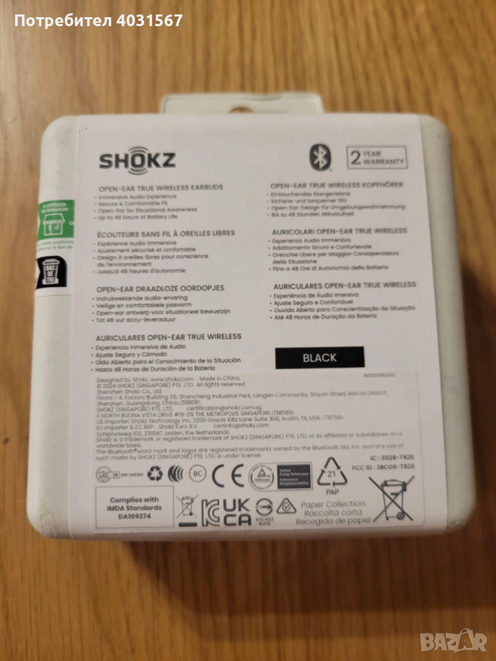 SHOKZ OpenFit 2 безжични слушалки TWS, Calls/Music, Bluetooth, черен, снимка 1 - Bluetooth слушалки - 53004495 SHOKZ OpenFit 2 безжични слушалки TWS, Calls/Music, Bluetooth, черен, снимка 2 - Bluetooth слушалки - 53004495 SHOKZ OpenFit 2 безжични слушалки TWS, Calls/Music, Bluetooth, черен, снимка 3 - Bluetooth слушалки - 53004495 SHOKZ OpenFit 2 безжични слушалки TWS, Calls/Music, Bluetooth, черен, снимка 4 - Bluetooth слушалки - 53004495 1/4