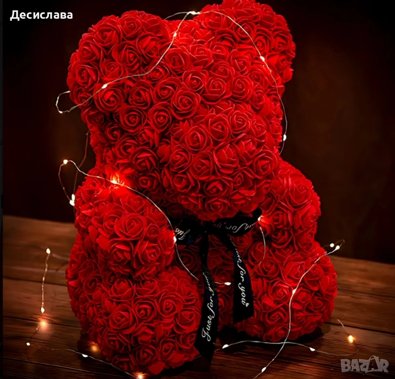 Плюшено мече с LED рози - подарък за мама, момиче, баба - комплект вечни рози 25 см → Обява 53005063
