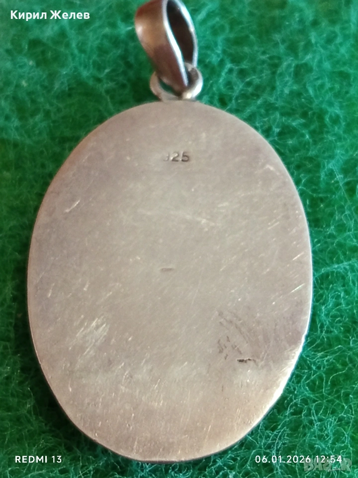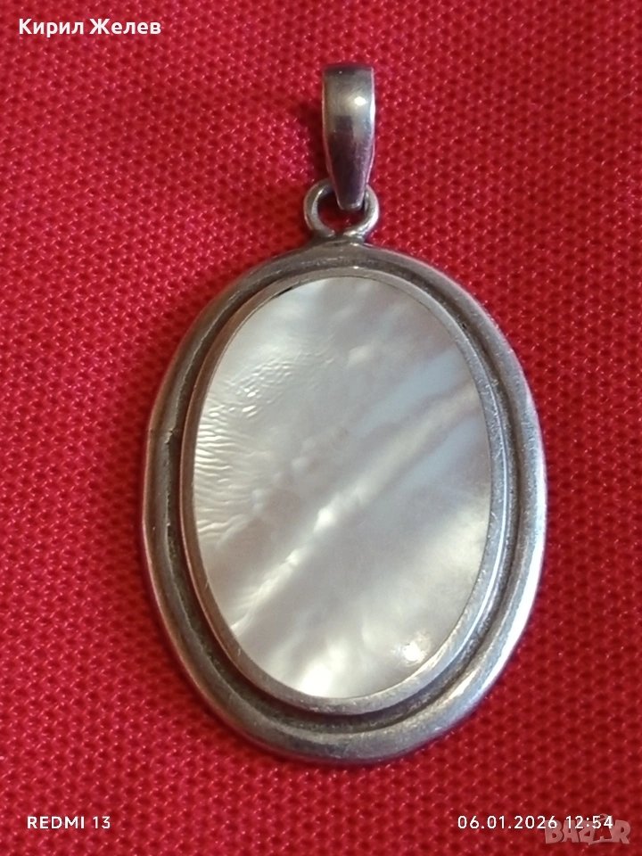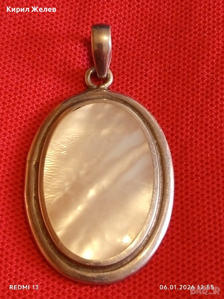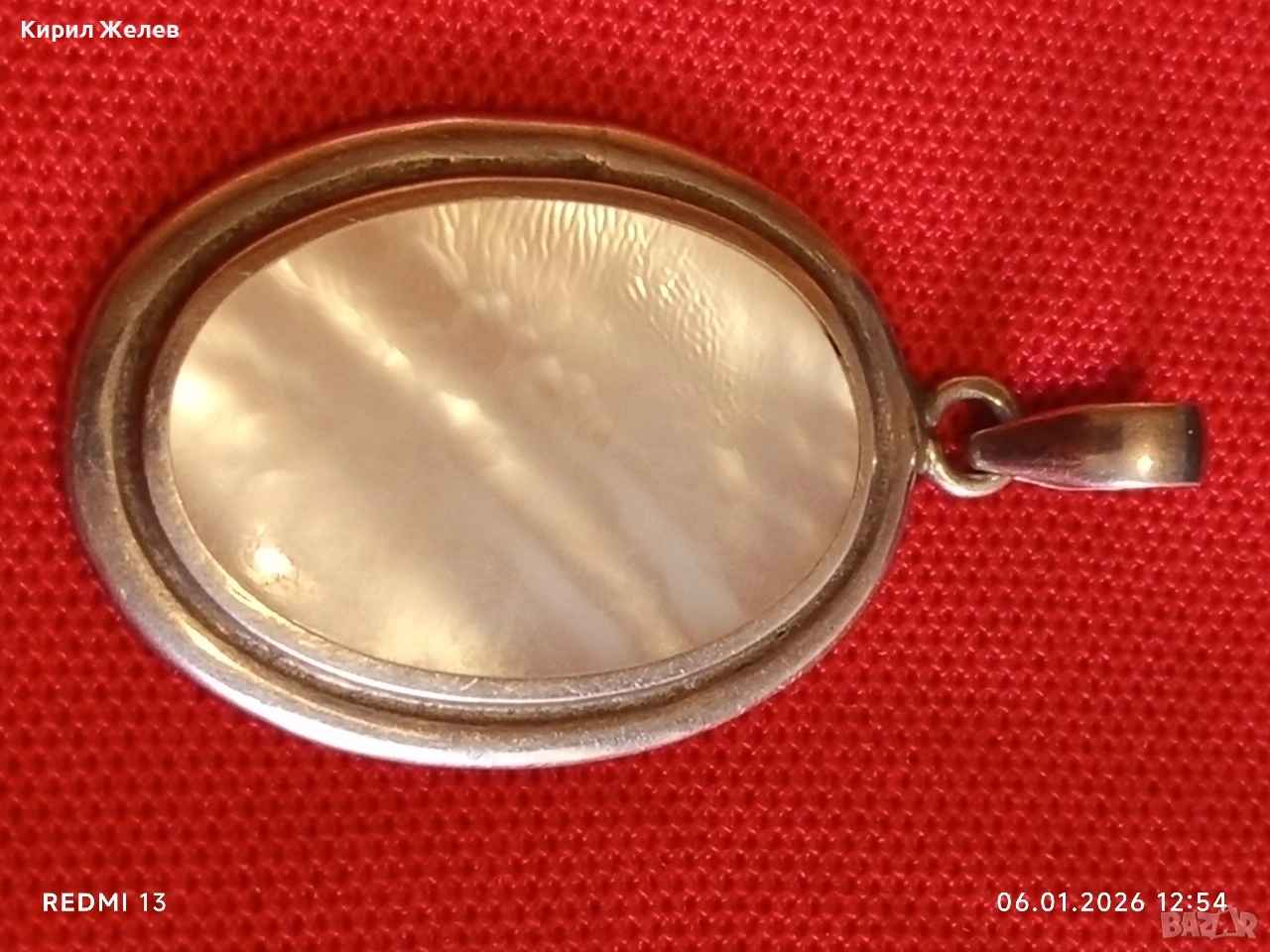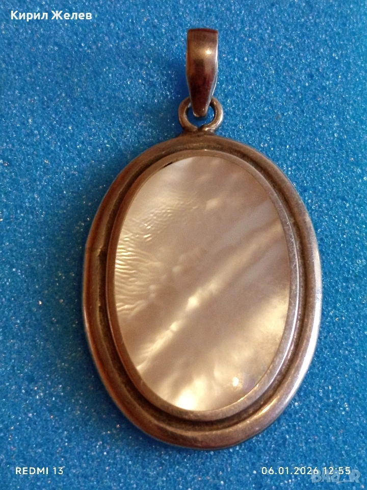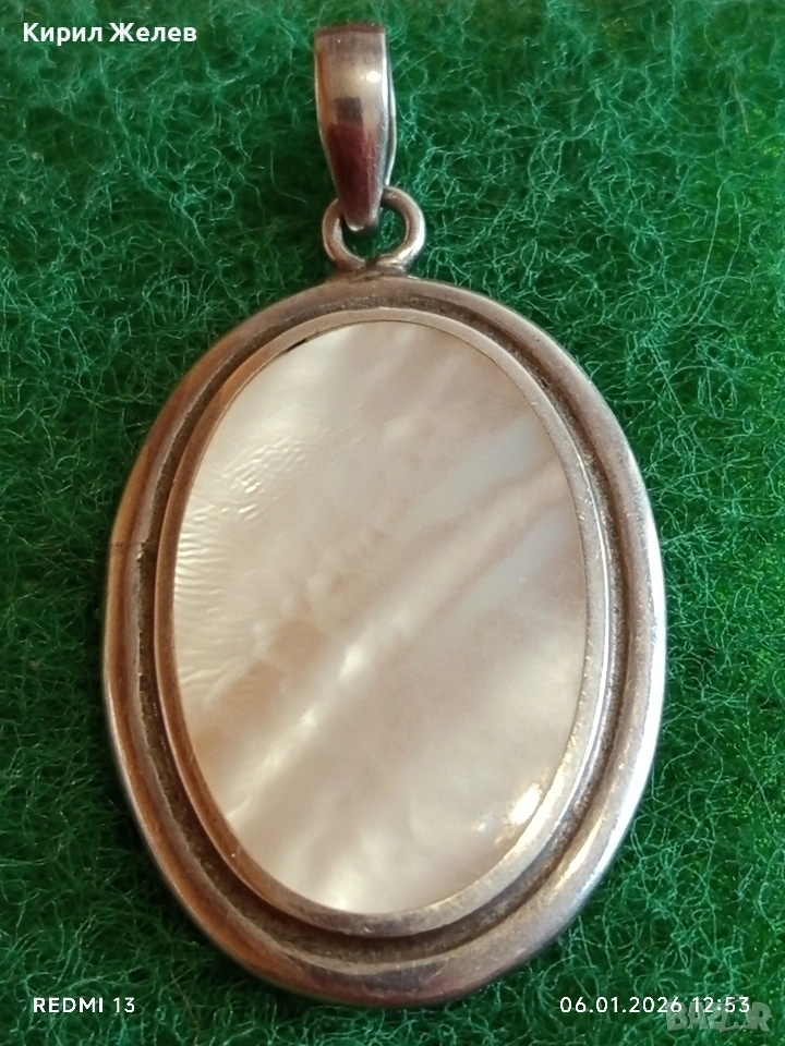 Класически сребърен медальон с натурален СЕДЕФ майсторска ръчна изработка 41953