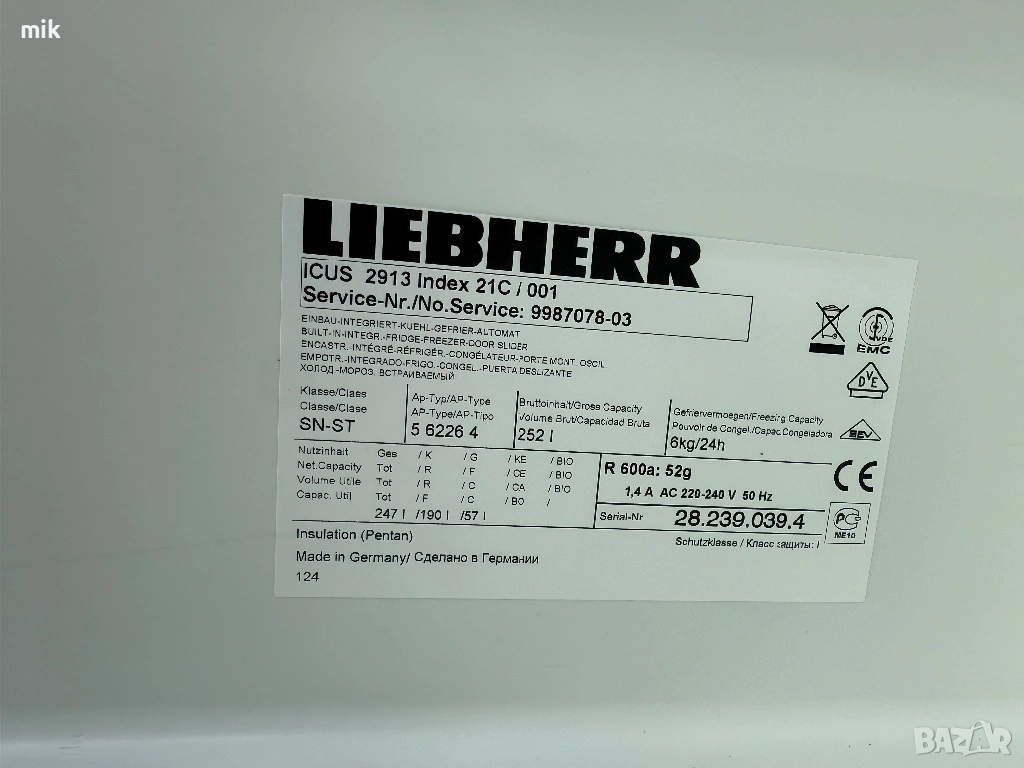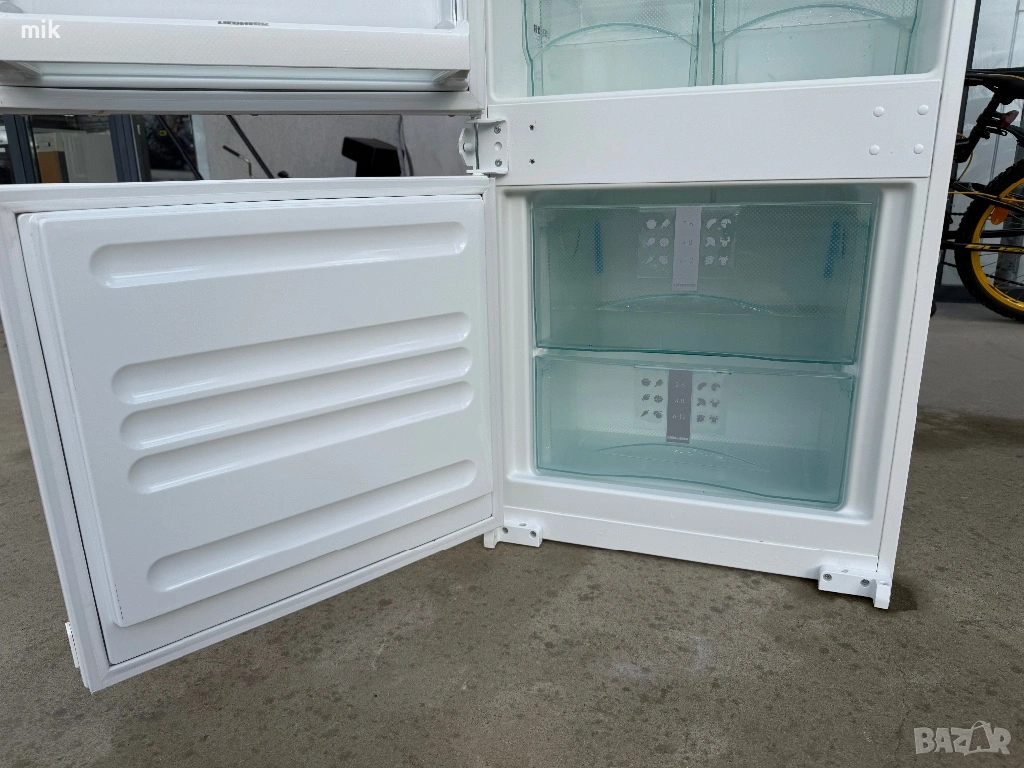 Хладилник с фризер Либхер Комфорт. Хладилникът е модел за вграждане. Без проблем може да се ползва и свободно. Възможност за смяна посоката на отваряне на вратите. Оригинално и здраво оборудване. Перфектни уплътнения. Хладилникът е като нов!