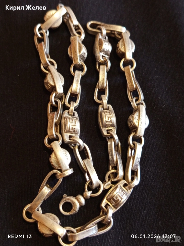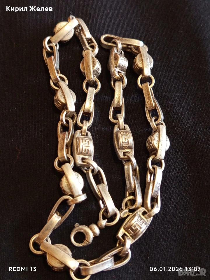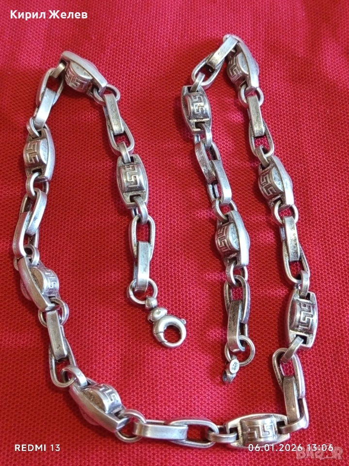 Сребърен ланец плетка тип ГРЪЦКИ КЛЮЧ масивен фешън модел много красив 21295, 179 €