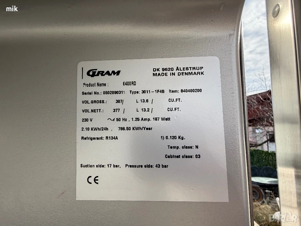 Професионален хладилник Gram. Размери 178в-60ш-64д. Регулируеми крака. Височина на краката около10 см. Вътрешен размер 150-50-43д. С вентилатор. Работна температура 1-9 градуса. Произведен в Дания. Тих и икономичен. Здрави и меки уплътнвния.