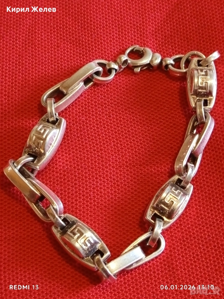 Сребърна гривна плетка тип ГРЪЦКИ КЛЮЧ масивна фешън модел много красива 10859
