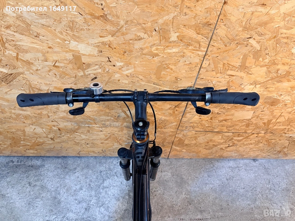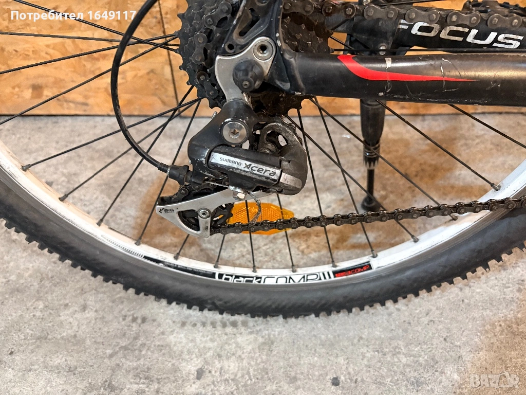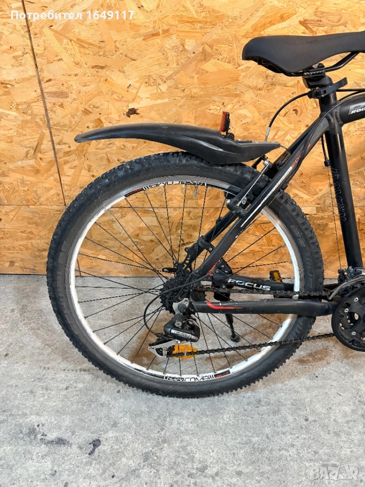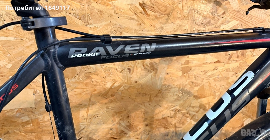 Продавам 26цола употребяван велосипед Focus Raven Rookie[made in Germany]. Олекотена, алуминиева рамка[ALU 7005] - 50см. Външни скорости Shimano Acera - 3x7бр. c палцови команди Shimano. Прaво алуминиево кормило с алуминиева лапа Genesis. Предна алуминиева-амортисьорна вилка SR Suntour. Алуминиеви курбели SR Suntour. Спортна, ергономична седалка с алуминиево колче. Алуминиеви, двойностенни капли Black Comp, и гуми Schwalbe c MTB профил. Предна и задна алуминиеви V-break спирачки. Стойка, олекотени пластмасови калници, светлоотразители, звънец, алуминиева кошничка за бутилка.