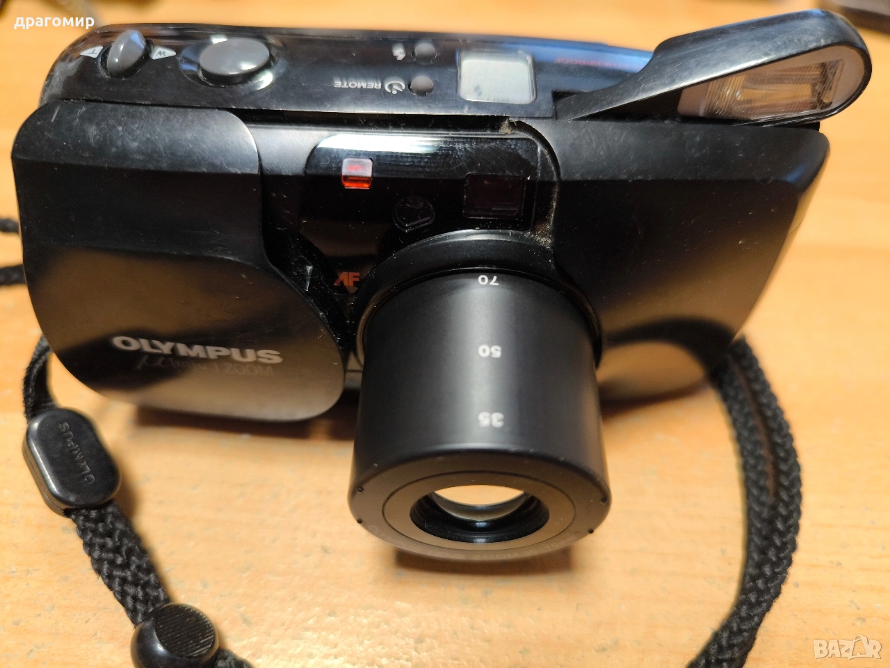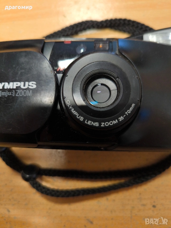 продавам лентов фотоапарат, OLYMPUS M (mju) zoom, работи, има кожен калъф, работи с една батерия CR123A, имам още много други фотоапарати, камери, обективи, чанти, светкавици, батерии, зарядни устройства, касети, филтри, ремъци, ленти, при закупуване на повече неща отстъпка