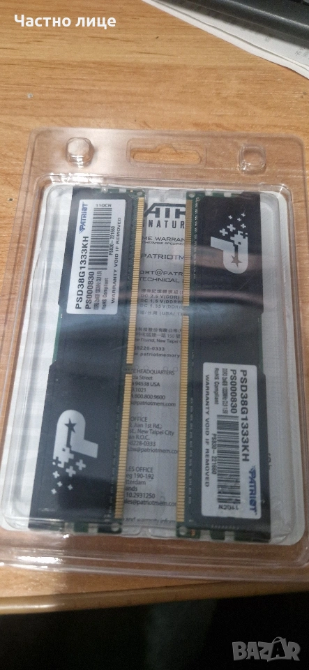 рам памет Patriot Signature Line 8GB RAM (2x4GB) PC3-10600 DDR3-1333 SDRAM PSD38G1333KH , снимка 1 - RAM памет - 53006533 рам памет Patriot Signature Line 8GB RAM (2x4GB) PC3-10600 DDR3-1333 SDRAM PSD38G1333KH , снимка 2 - RAM памет - 53006533 1/2