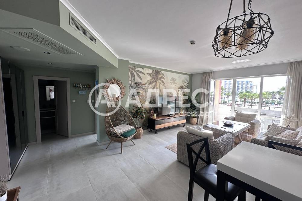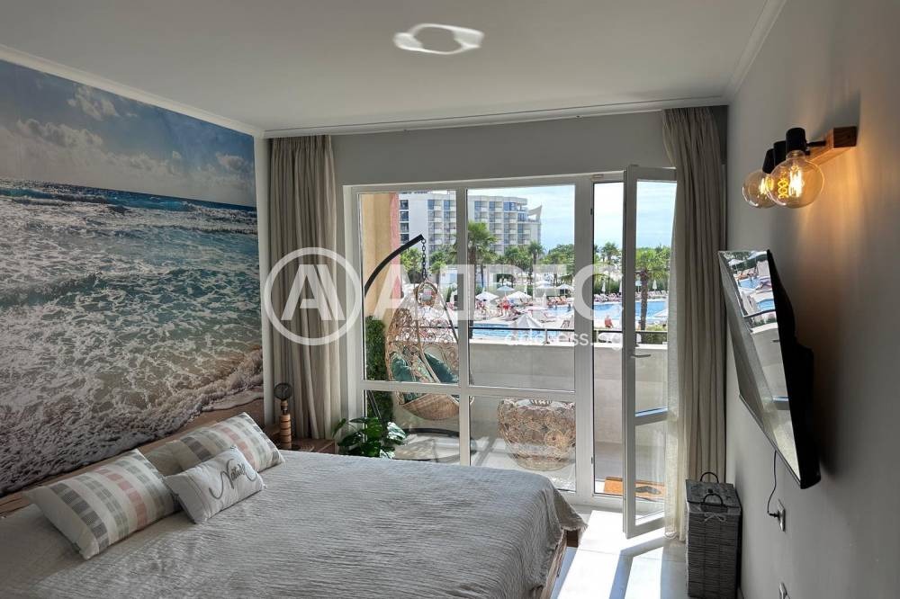 Просторен двустаен апартамент на първа линия море в к. к. Слънчев бряг. Площ на имота 88.86 кв.м, ет. 2 от 9, асансьор. Подходящ за летен отдих (сезонно ползване). Дизайнерско изпълнение! Напълно обзаведен и оборудван с бутикови мебели. Уникално място за лятната ви почивка!