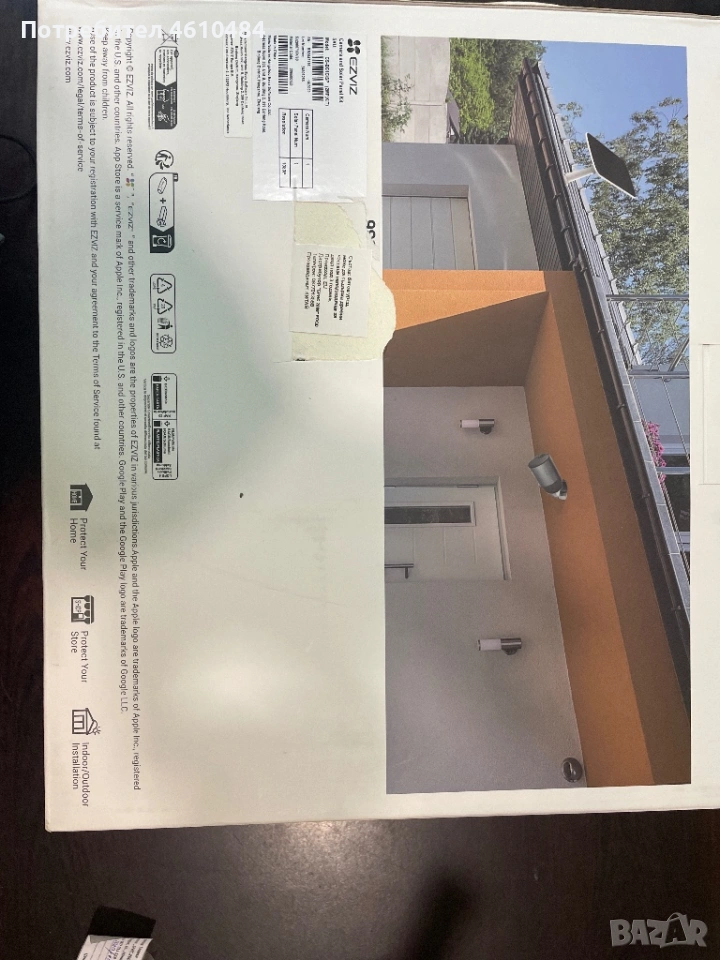 Това е комплект за видеонаблюдение EZVIZ eLife, който включва безжична смарт камера на батерии и соларен панел за постоянно захранване.