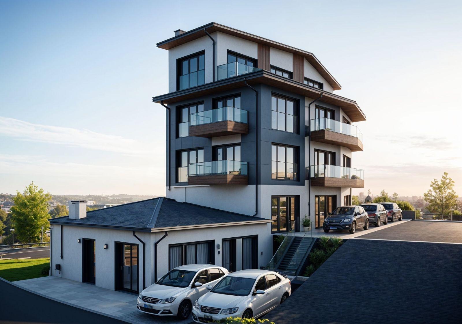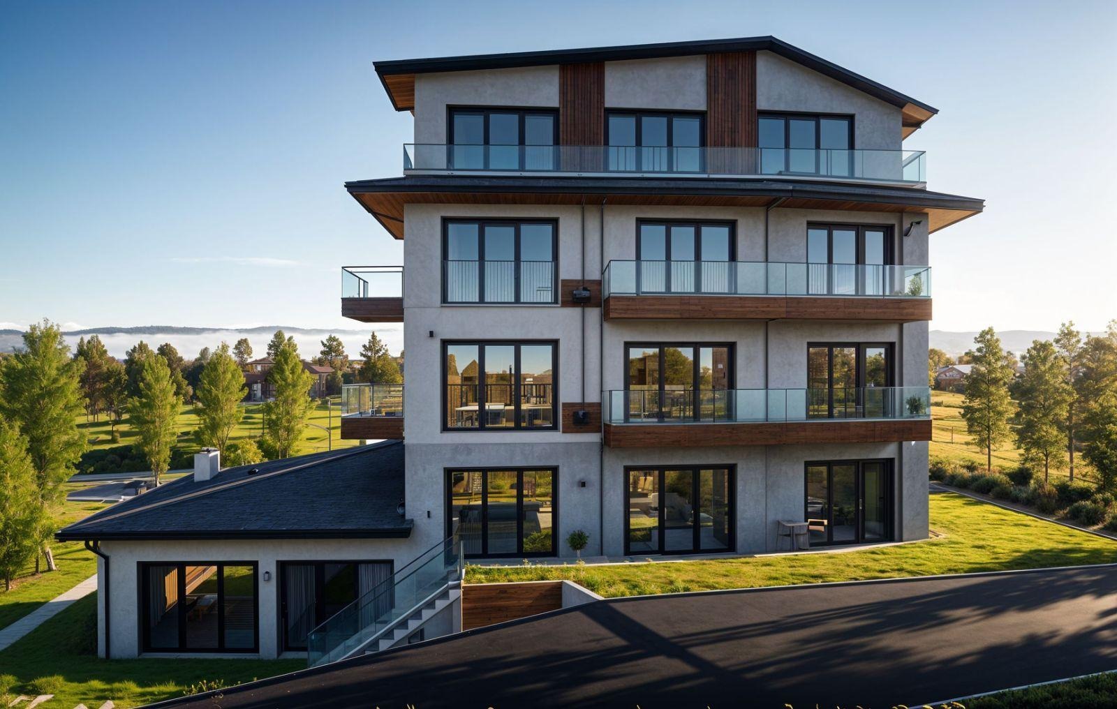 Сградата комбинира модерен дизайн и функционалност, осигурявайки комфортна и удобна среда за живеене в спокоен район.