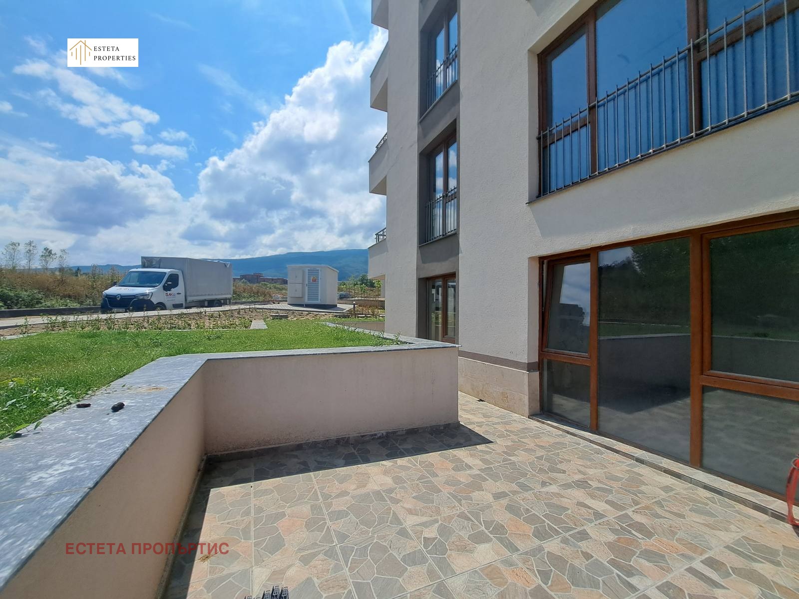 - Просторната тераса и зеленото пространство предлагат идеални условия за отдих, игри или градинарство