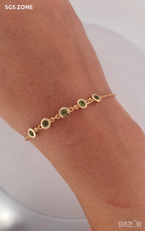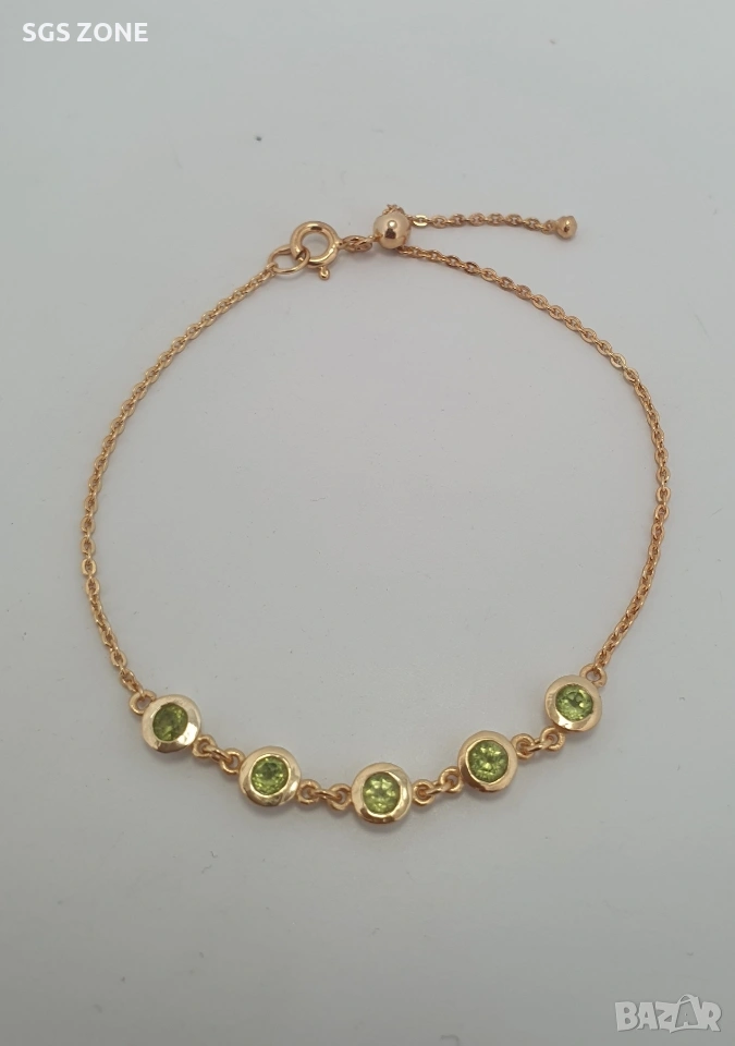 Нежна позлатена сребърна гривна с естествен перидот. Още снимки и видеа на продукта в Instagram и Facebook sgs.zone, уебсайт sgs.zone. Можем да изпратим допълнителна информация чрез Viber. Изпращане Speedy и Эконт. Шоурум в София, Дондуков, 53. Всички продукти са със сертификати и подаръчна кутия. Продукти имат допълнителни български маркировки