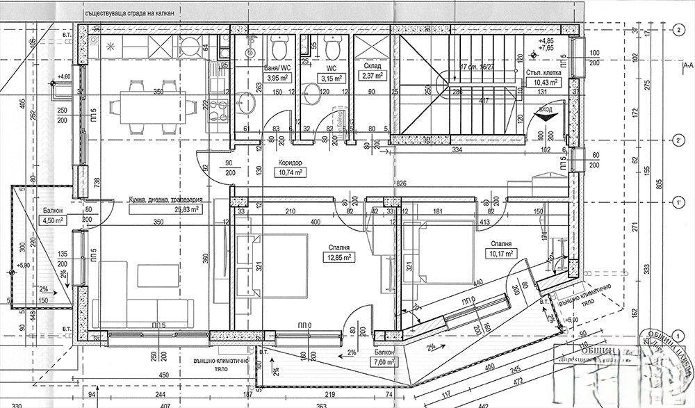Предлаганият от нас имот е ситуиран на 2-ри жилищен етаж, с площ от 111 кв.м. и има следното разпределение: коридор, дневна с кухня и трапезария, 2 спални, мокро помещение, тоалетна, баня, тераса