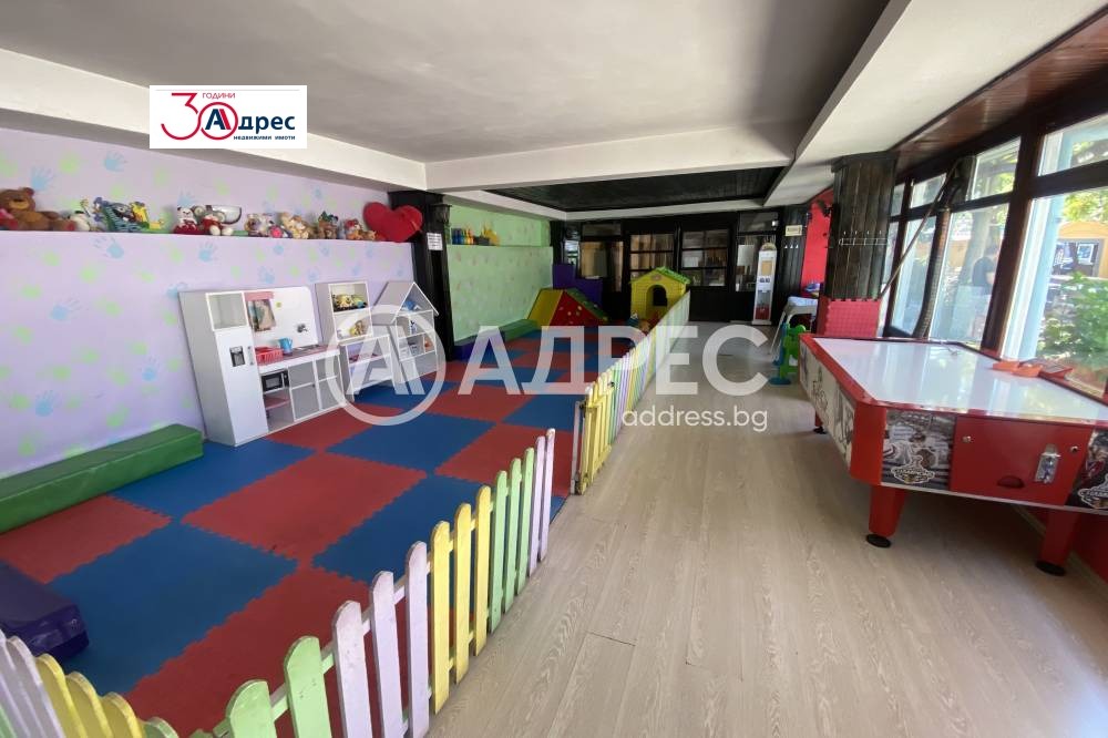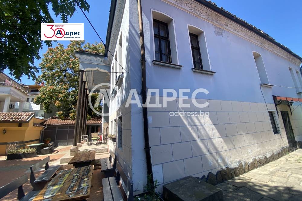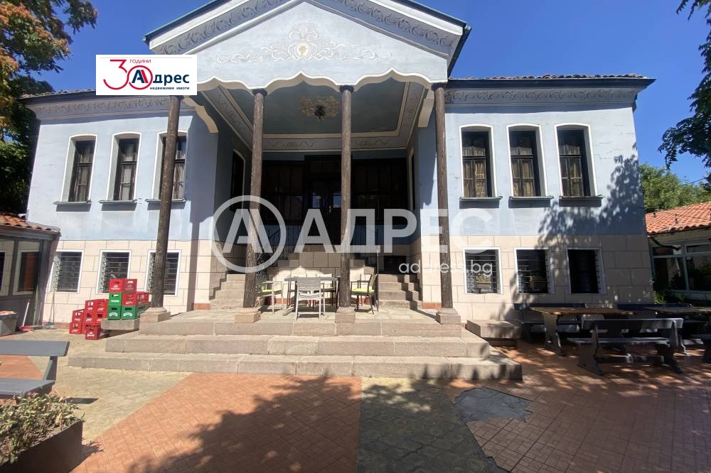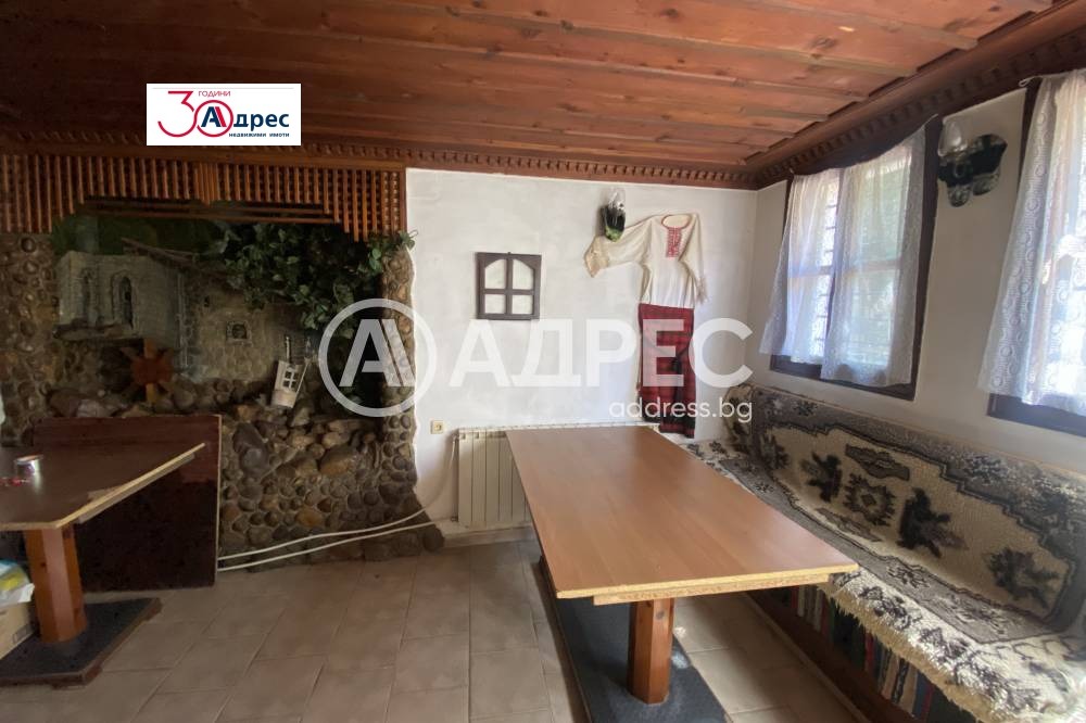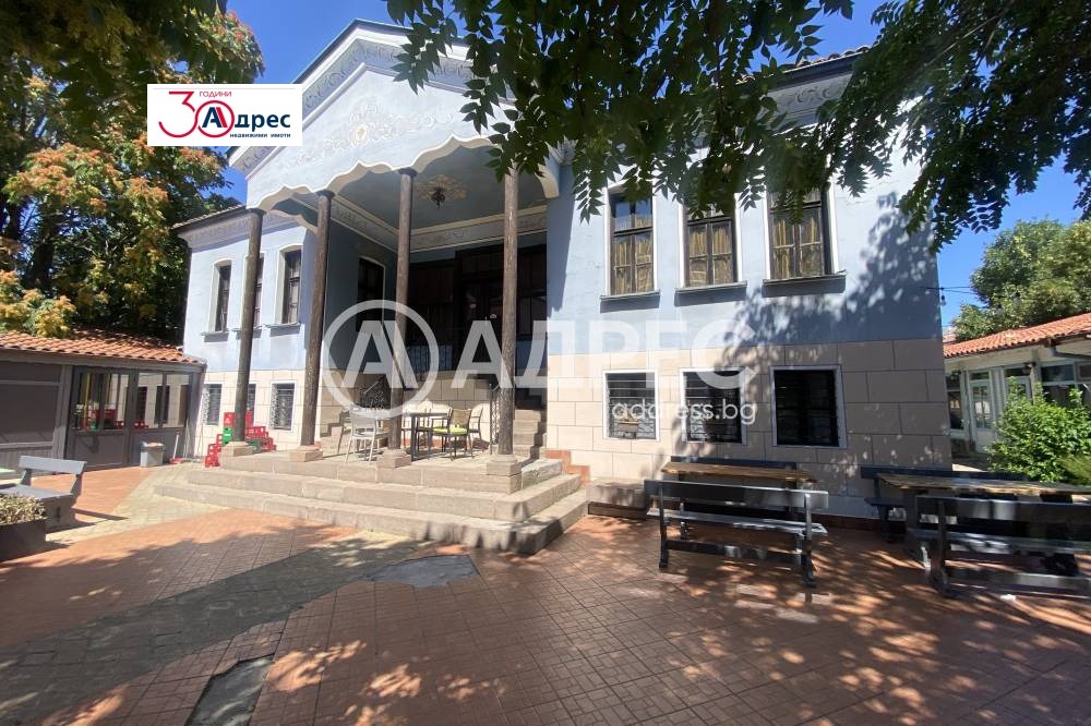 Адрес Недвижими Имоти има удоволствието да Ви предложи един уникален самостоятелен обект, който може да се използва като къща, малък хотел, офис, търговско помещение или друго. Разгърнатата застроена площ е 880 кв.м. Основната постройка е на две нива. На първото ниво е разположена механа с площ 200 кв.м., бар с площ 120 кв.м. и кухня с площ 200 кв.м. и санитарни възли. Помещенията са взаимно свързани. Кухнята и бара са оборудвани по стандартите на обществени заведения и ресторанти. На вторият етаж е разположено просторно помещение с отделни зали / ресторант / с площ 200 кв.м. До вторият етаж се достига чрез двустранни елегантни перила. Площта на парцела е 1421 кв.м. Дворът е просторен и равен. Има изграден навес с площ 360 кв.м., в който е разположен детски кът. / има възможност да се раздели на отделни редови помещения - тип хотелска част /. Ограден е от масивни огради, които осигуряват самостоятелност, уединение и уют.