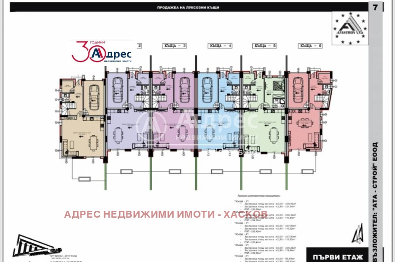 Предлагаме ви комплекс от 6 бр. редови къщи, намиращи се в кв. Младежки хълм! Всяка къща има прилежащо собствено дворно място и предлага уют и комфорт на своите обитатели. Къщите са подходящи, както за хора с динамично ежедневие, така и всеки, който има нужда от тишина, спокойствие и чист въздух, но в близост до удобствата на градa. Към всяка къща са предвидени гараж и паркомясто. Къщите са проектирани с Южни дворове!!! Къща 3 е с РЗП- 223,42кв.м. Първи етаж(партер) е с площ-107,80кв.м.- състои се от голям дневен тракт( дневна с трапезария и кухненски бокс) с отворен план с панорамни прозорци с излаз на просторна веранда, санитарен възел, килер и Гараж! Вътрешни стълби водят до Втори етаж, където се намират три спални, като основната(родителска) е с излаз на тераса има собствена баня и тоалетна и дрешник. На етажа има и мокро помещение!!