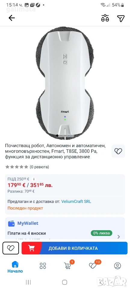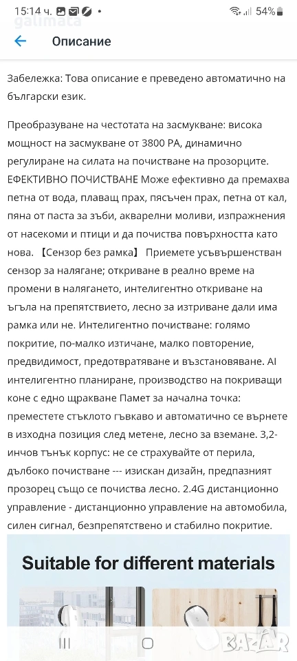 Робота ми попадна случайно, при пускане работи залепя се за прозореца и тръгва но няма чорапчета които се слагат и не е чистено с него. Дистанционно също няма.