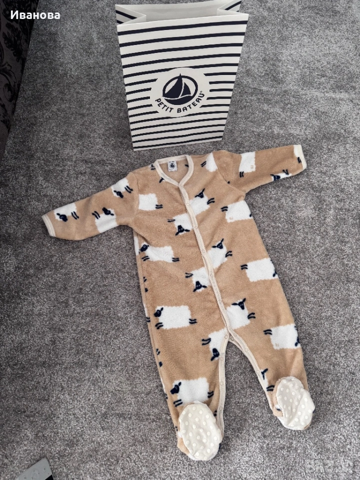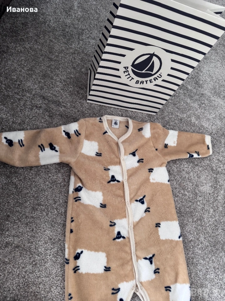 Луксозна пижама с титак копченца от полар с агънца. Никога не е обличана, само е махнат етикета. Купувана е от официален магазин на PETIT BATEAU във Флоренция. Прилагам и снимка с оригиналната цена.