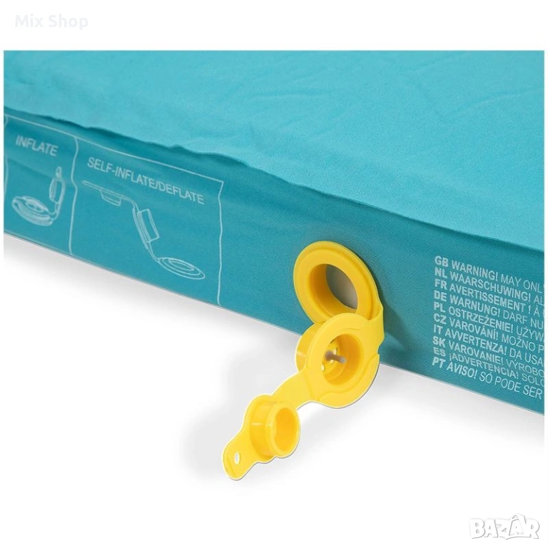 Този самонадуващ се матрак има и тик-так копчета отстрани. Това улеснява закрепването му към друг матрак от същия тип, за да се получи голям матрак за 2 души. Когато искате да съхранявате матрака, отворете клапана и го сгънете. Въздухът ще излезе автоматично. След това можете да го съхранявате в предоставената чанта, за да можете лесно да го вземете със себе си, където и да отидете.